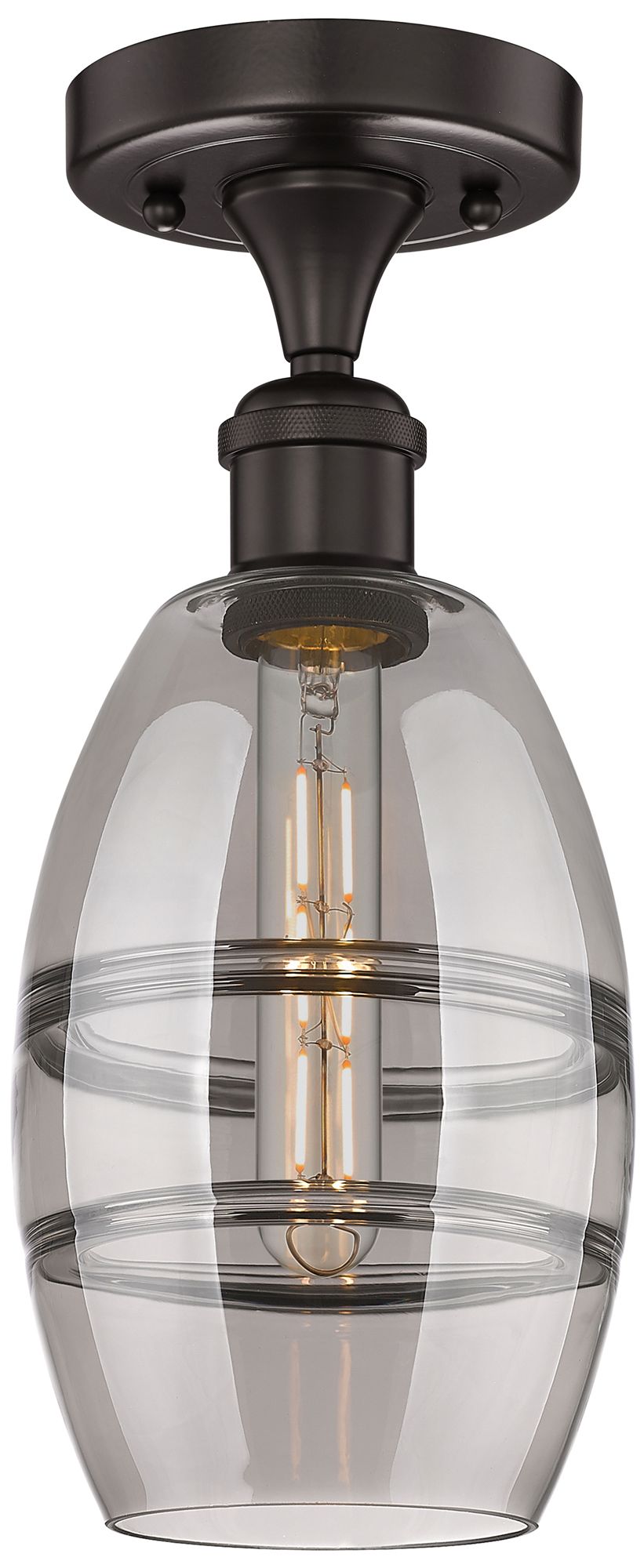Edison Vaz 5.88"W Oil Rubbed Bronze Semi-Flush Mount w/ Light Smoke Sh