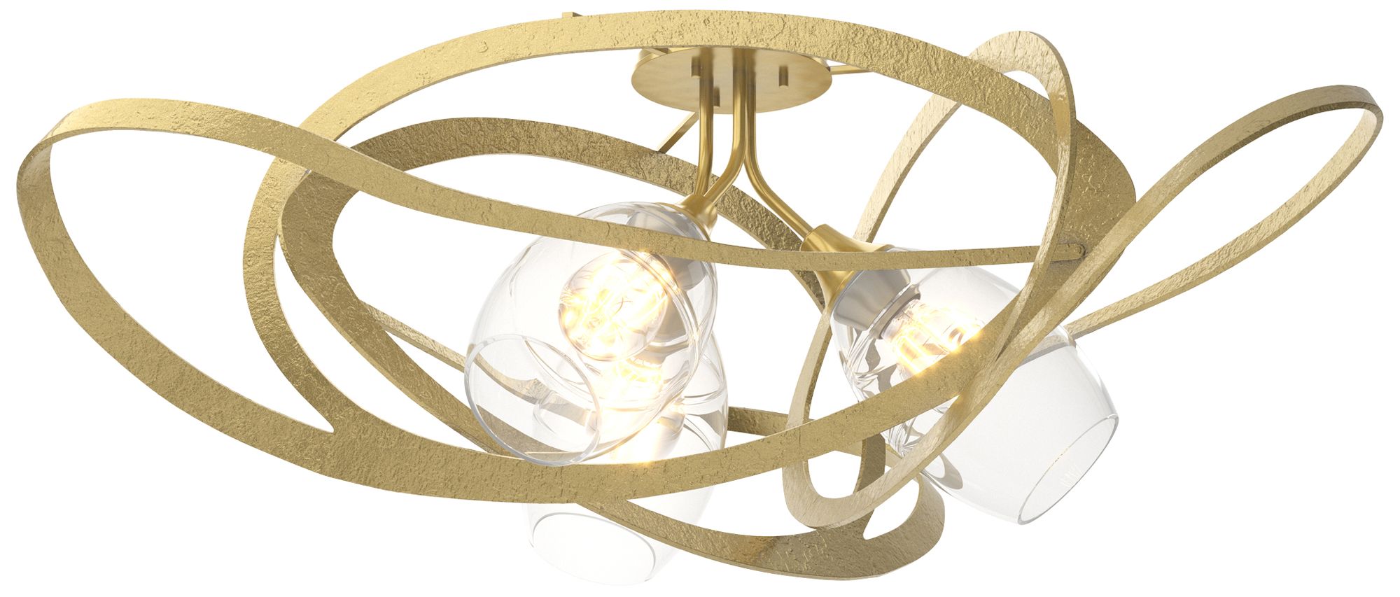 Nest 37.2" Wide Modern Brass Semi-Flush With Clear Glass Shade