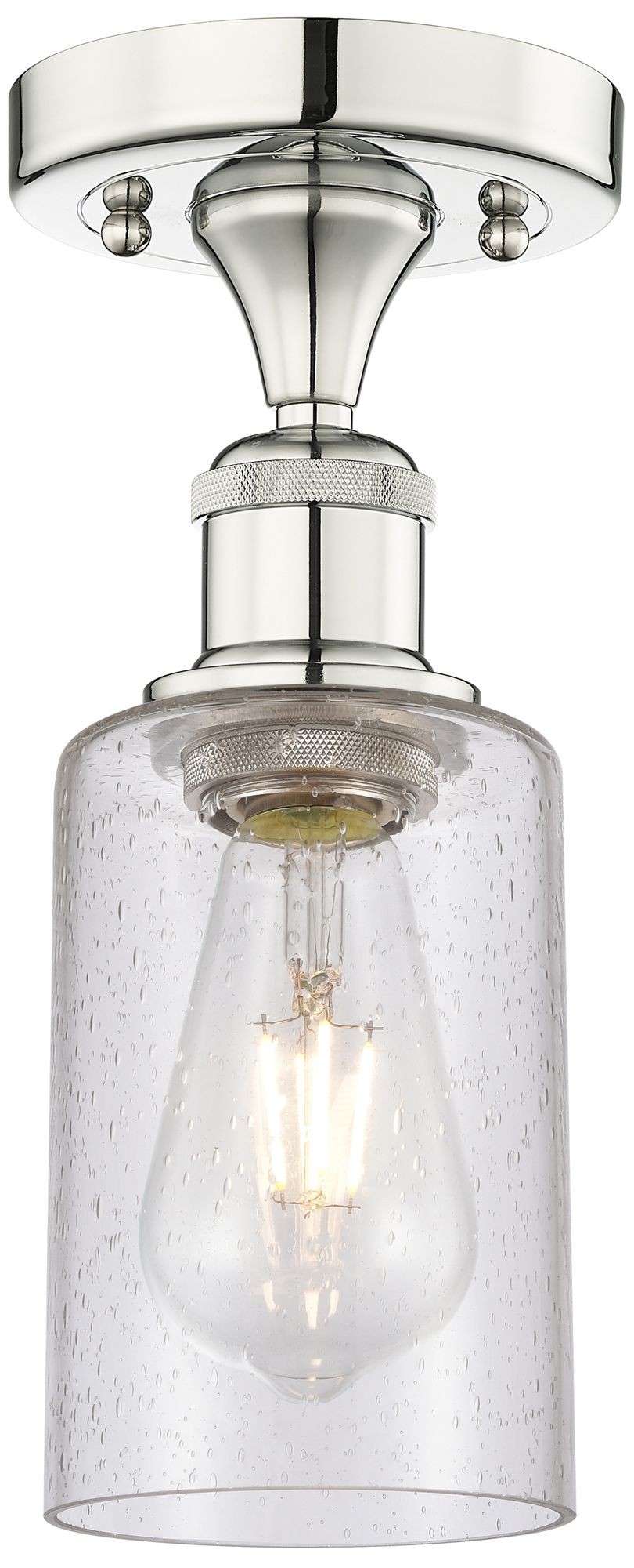 Clymer 3.88" Wide Polished Nickel Semi.Flush Mount With Seedy Glass Sh