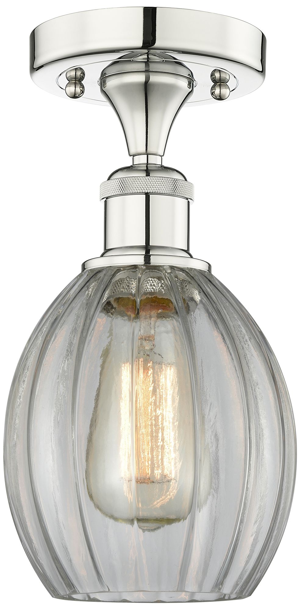 Eaton 5.5" Wide Polished Nickel Semi.Flush Mount With Clear Glass Shad