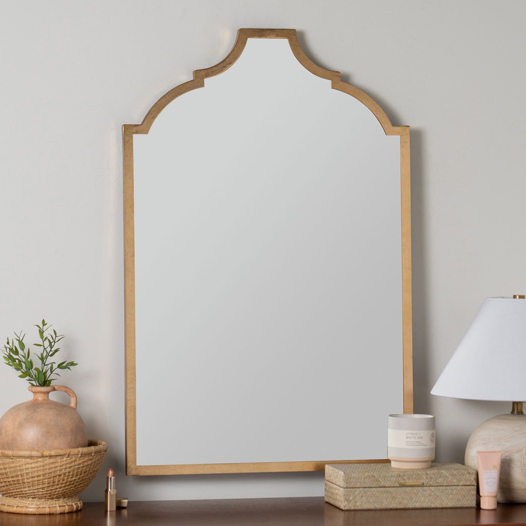 Geneva Gold Leaf Metal 24" x 36" Arch Top Wall Mirror