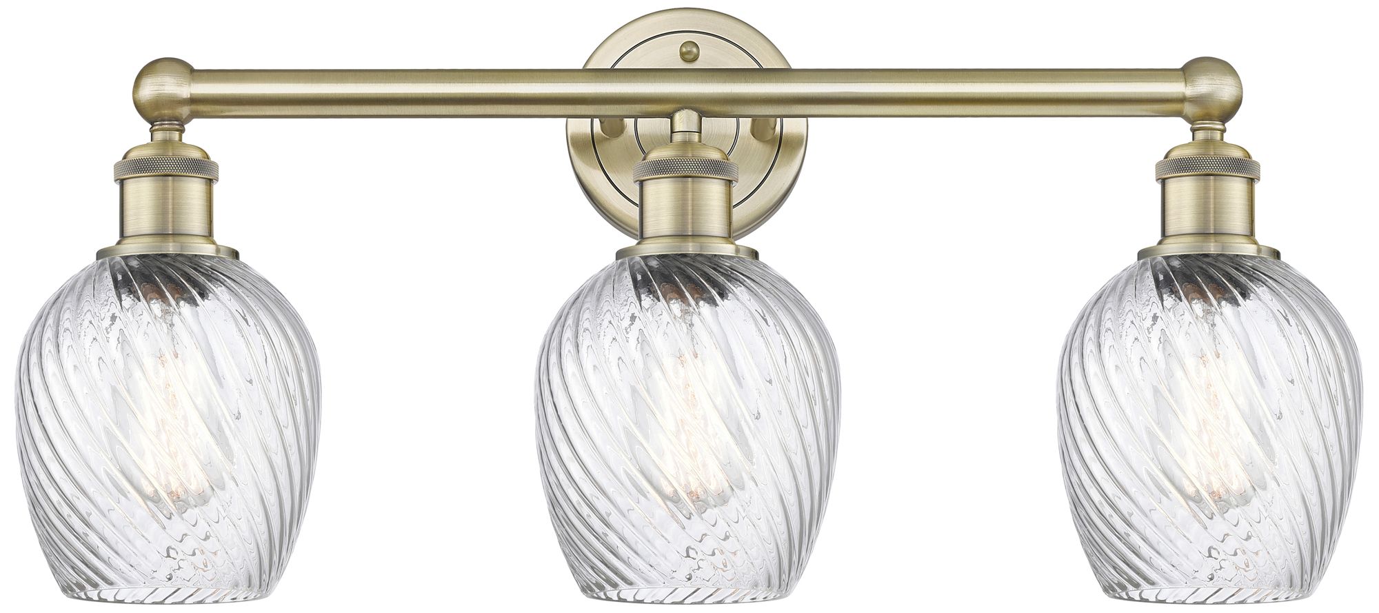 Salina 23"W 3 Light Antique Brass Bath Light With Clear Spiral Fluted