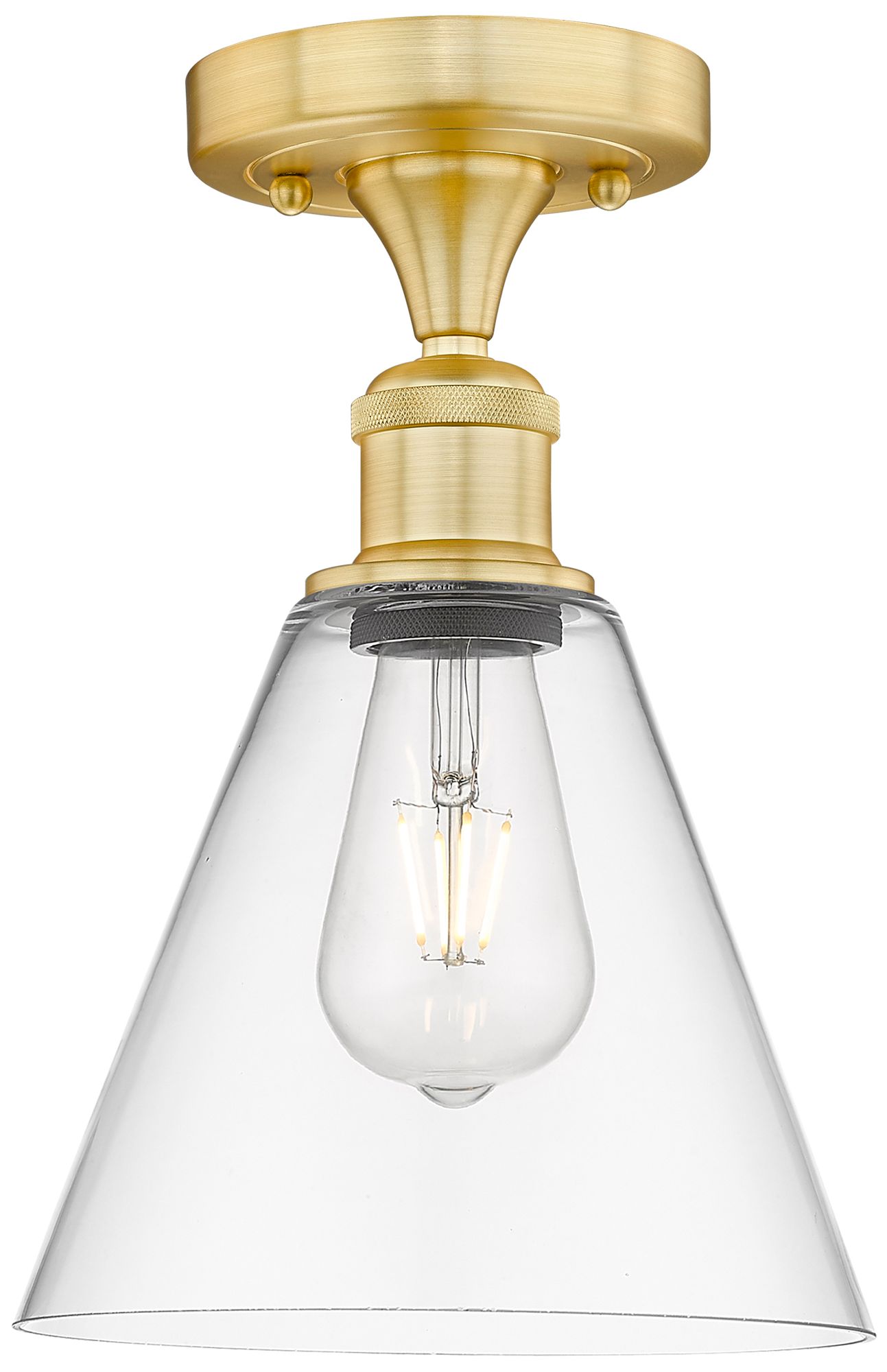 Berkshire 8" Wide Satin Gold Semi.Flush Mount With Clear Glass Shade