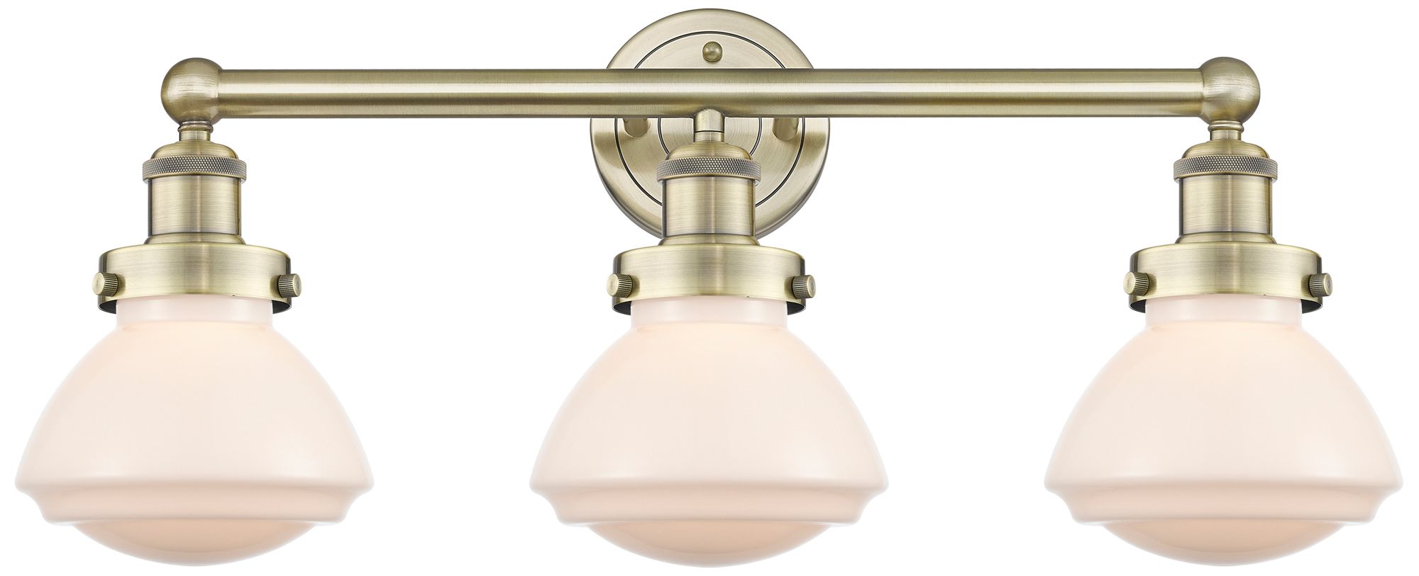 Olean 24.5"W 3 Light Antique Brass Bath Vanity Light With Matte White