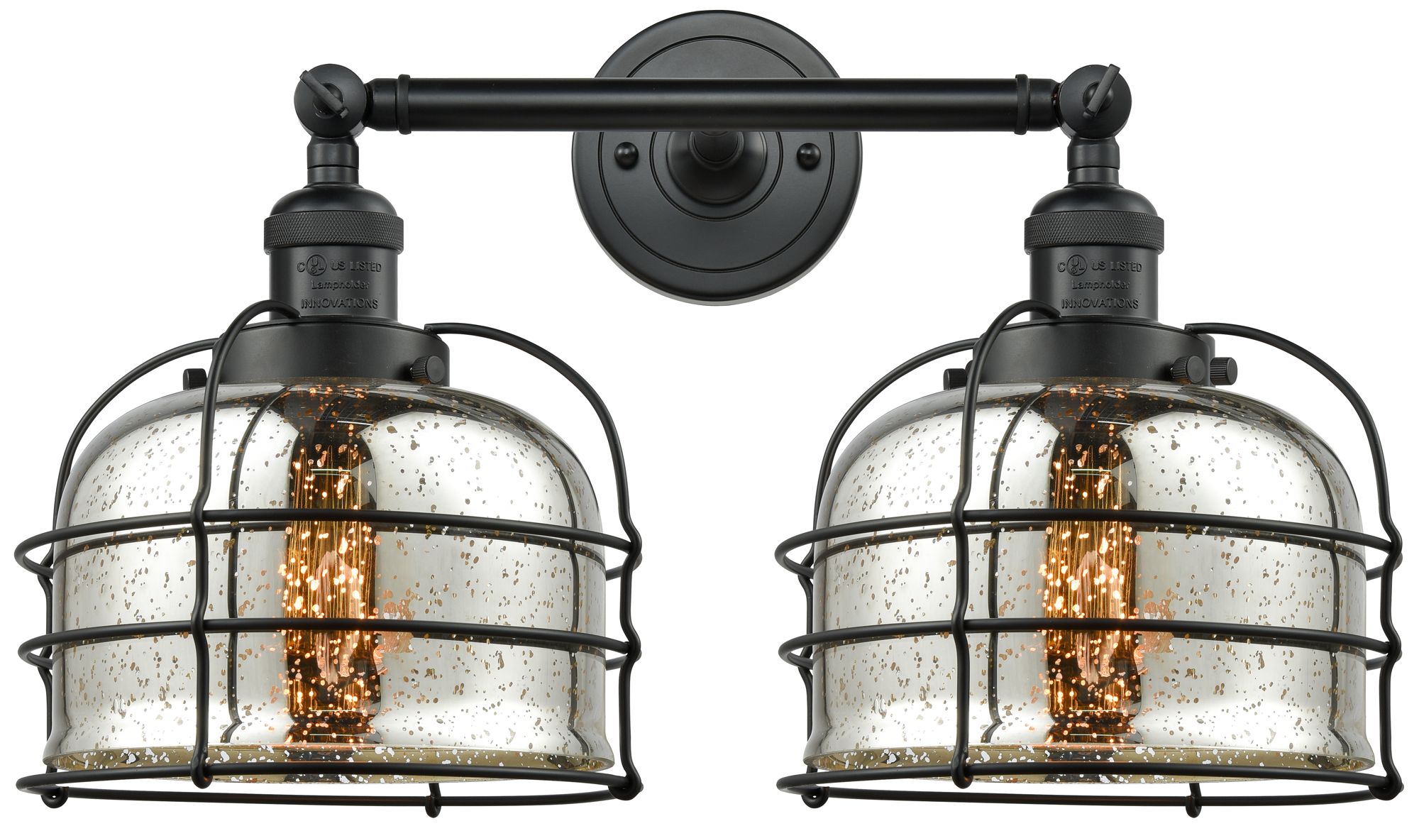 Franklin Bell Cage 19" 2-Light Matte Black Bath Light w/ Mercury Shade