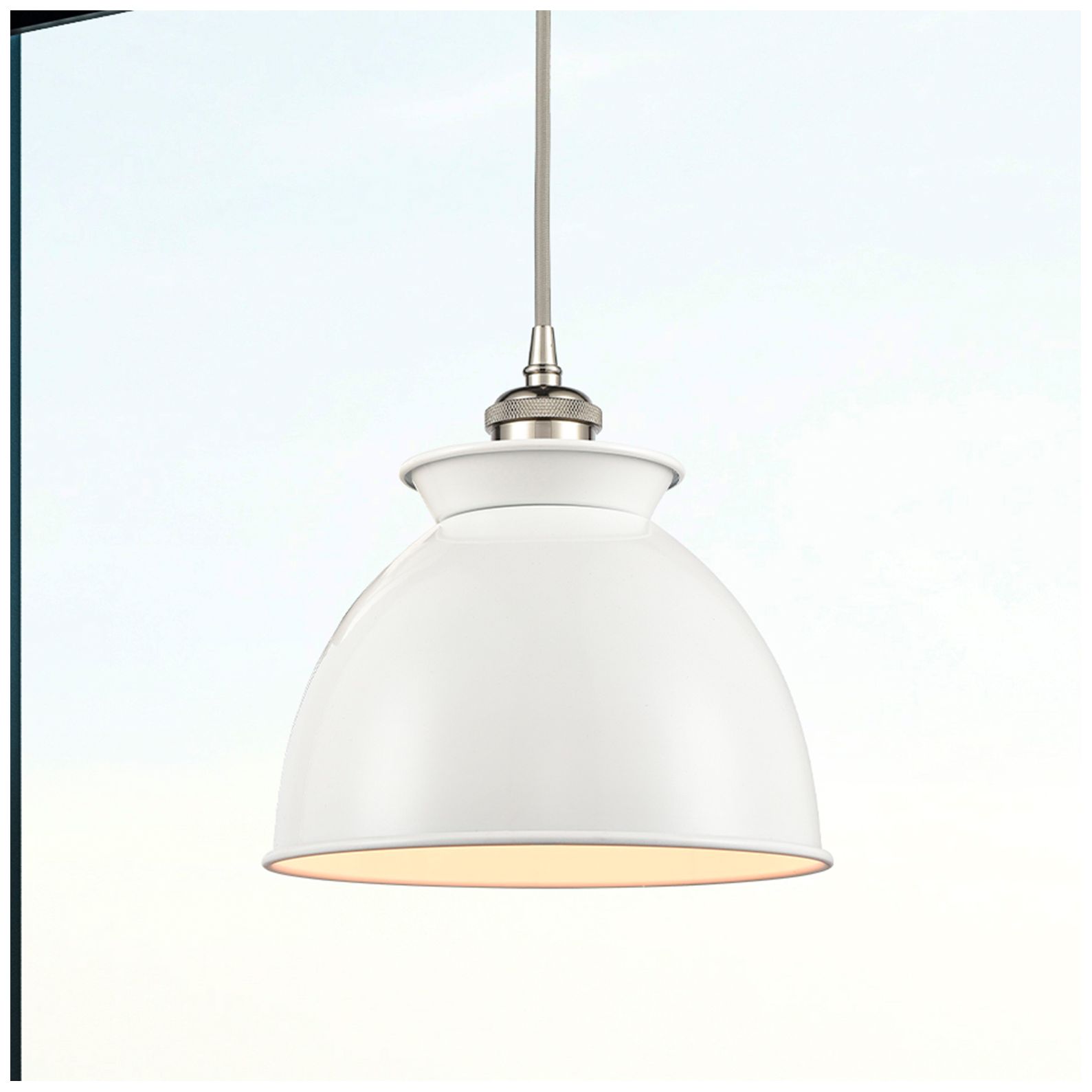 Adirondack 8.13"W Polished Nickel Corded Mini Pendant w/ Glossy White