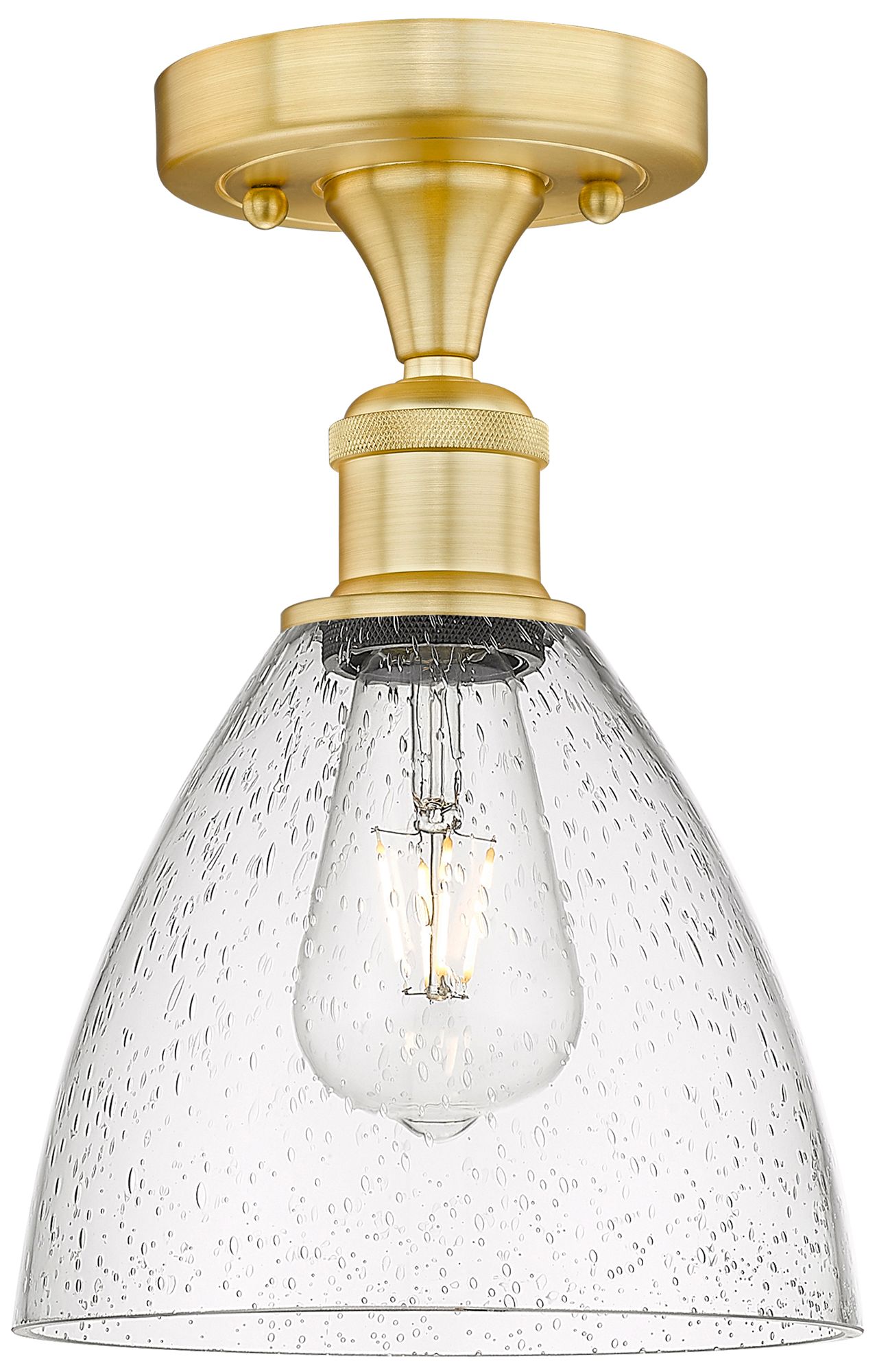 Bristol Glass 7.5" Wide Satin Gold Semi.Flush Mount With Seedy Glass S
