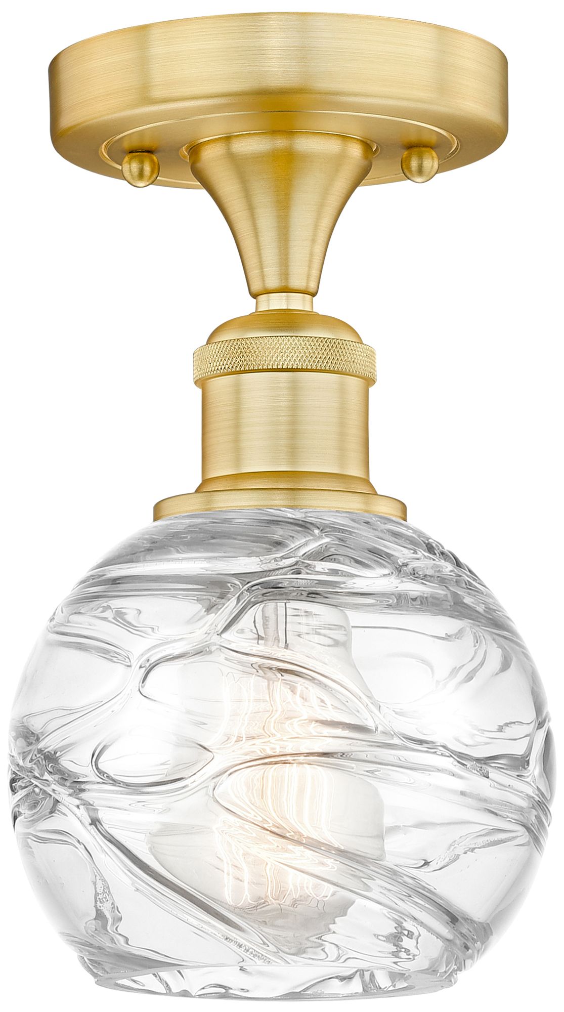 Athens 6" Wide Satin Gold Semi.Flush Mount With Deco Swirl Glass Shade