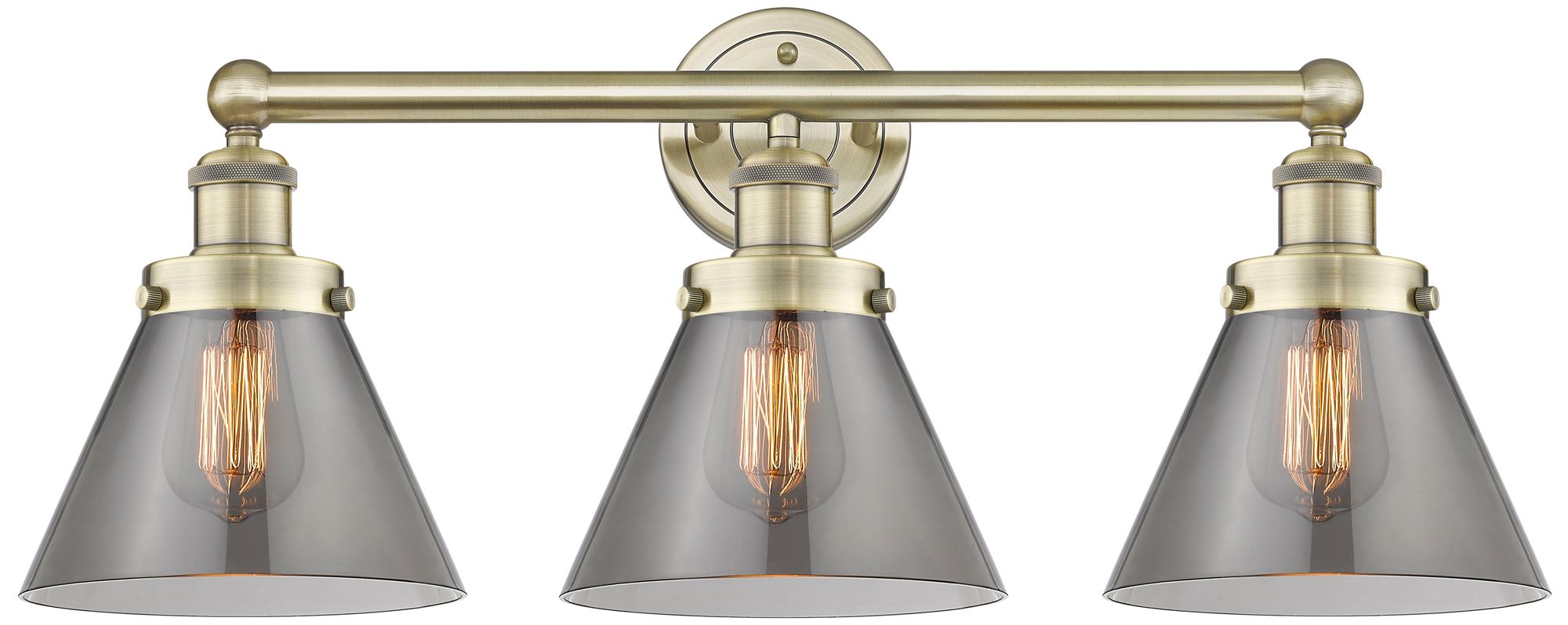 Edison Cone 24.5"W 3 Light Antique Brass Bath Light With Plated Smoke