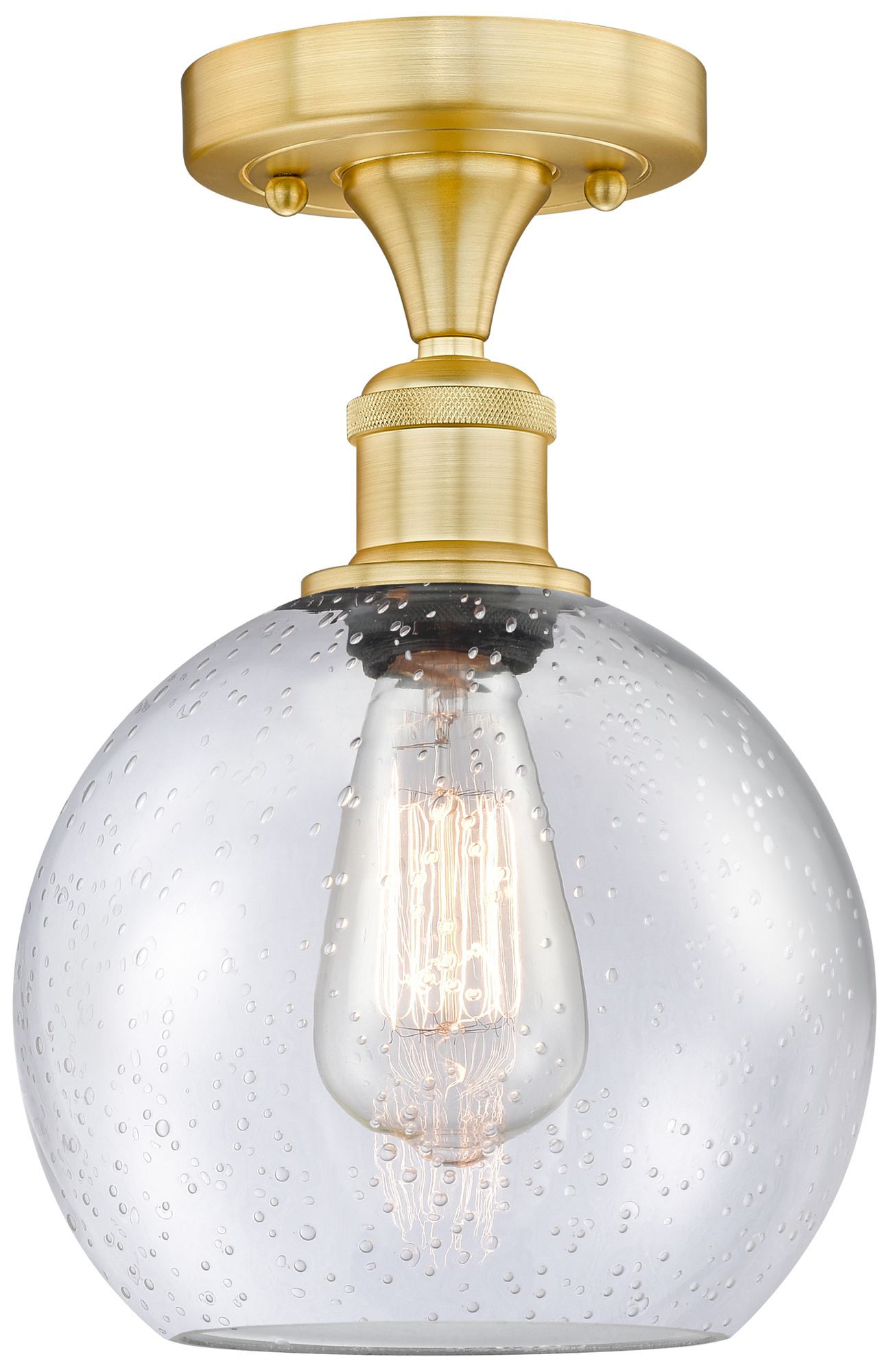 Athens 8" Wide Satin Gold Semi.Flush Mount With Seedy Glass Shade