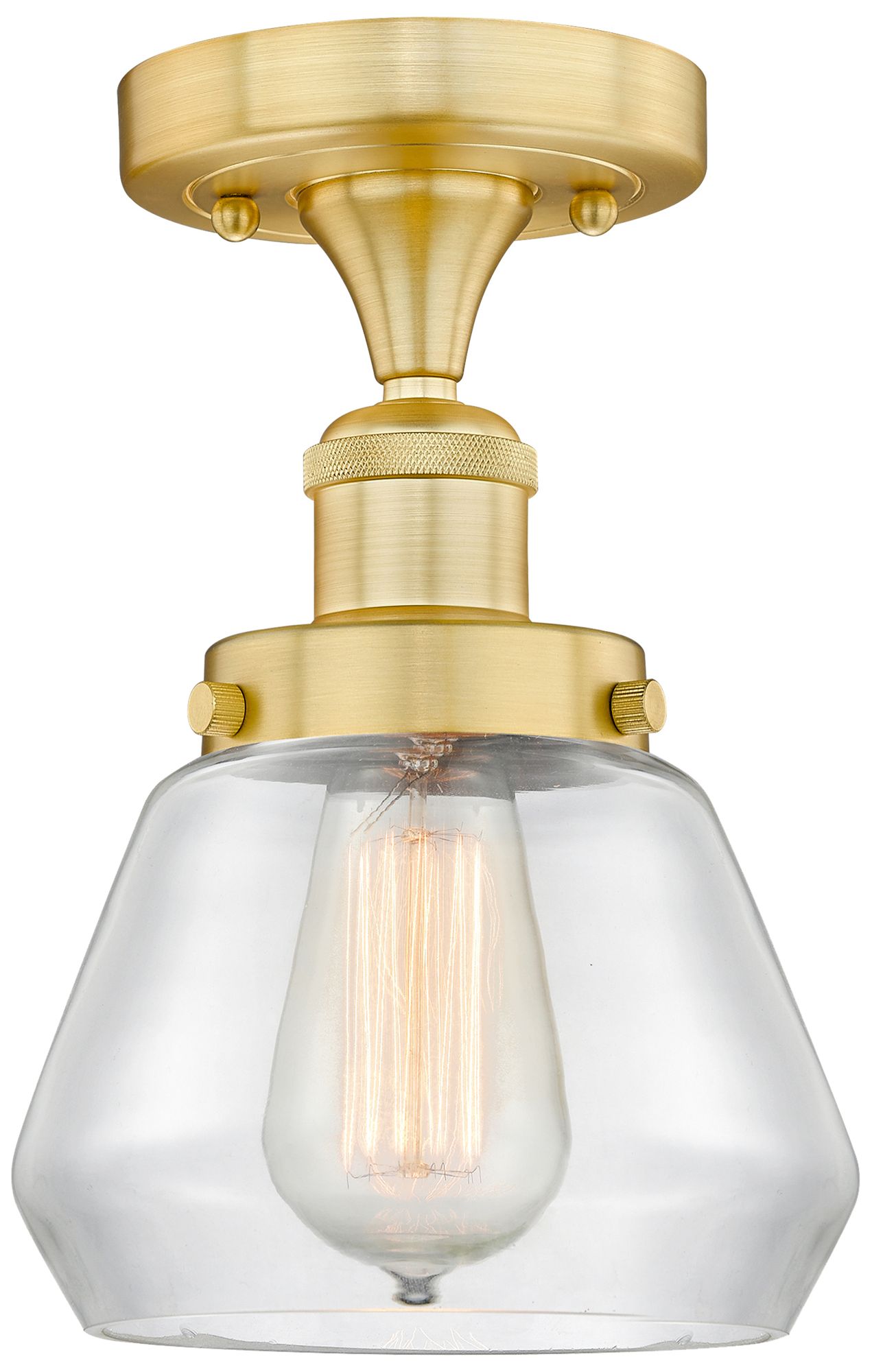 Fulton 6.5" Wide Satin Gold Semi.Flush Mount With Clear Glass Shade