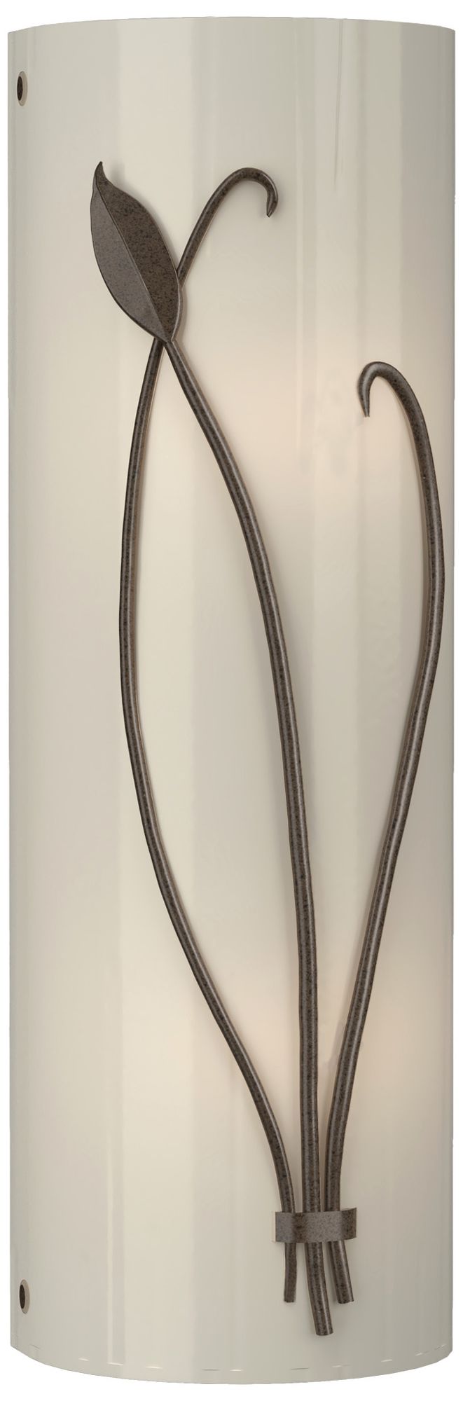 Forged Leaf and Stem 17" High Bronze Sconce With Ivory Art Glass Shade