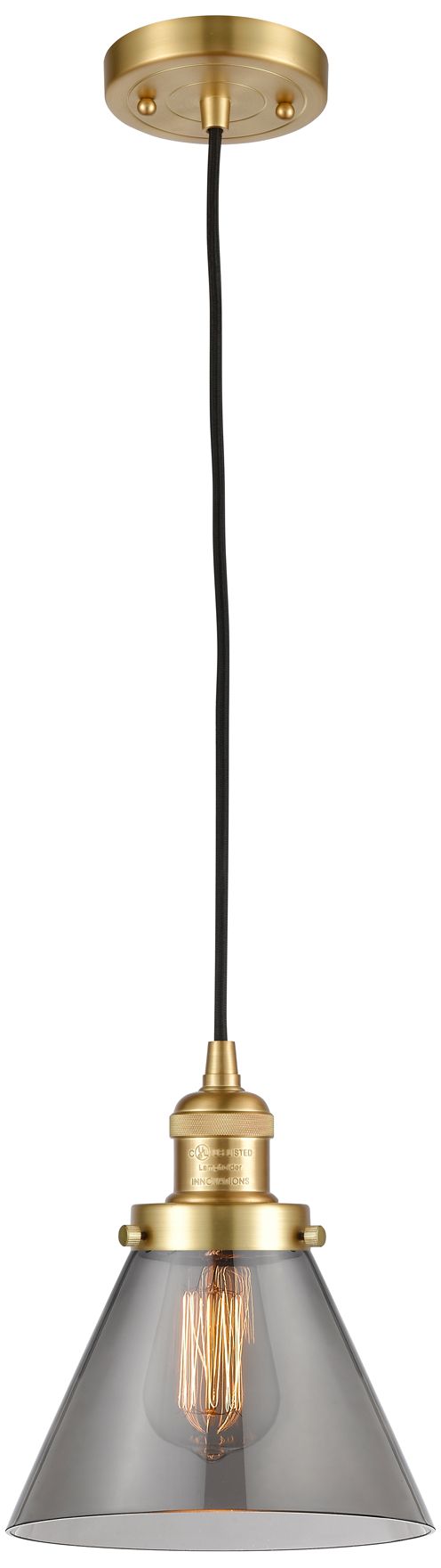 Franklin Restoration Cone 8" Satin Gold Corded Mini Pendant w/ Smoke S