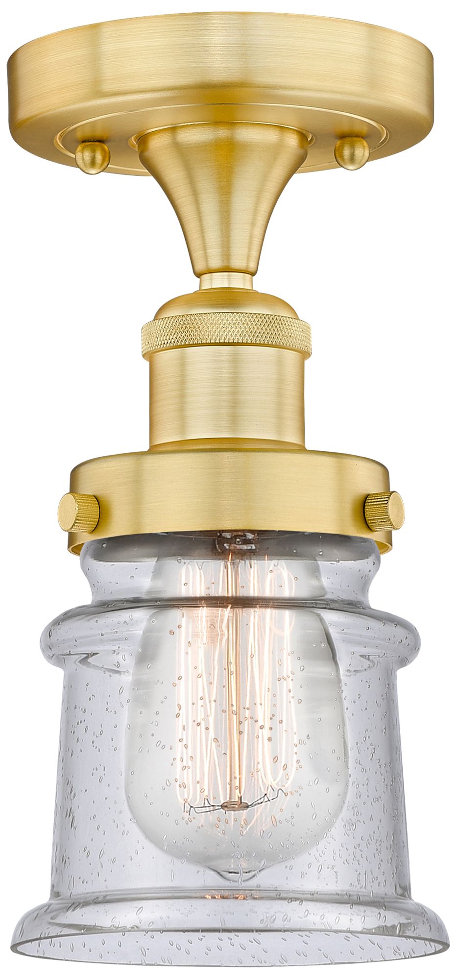 Canton 5.25" Wide Satin Gold Semi.Flush Mount With Seedy Glass Shade