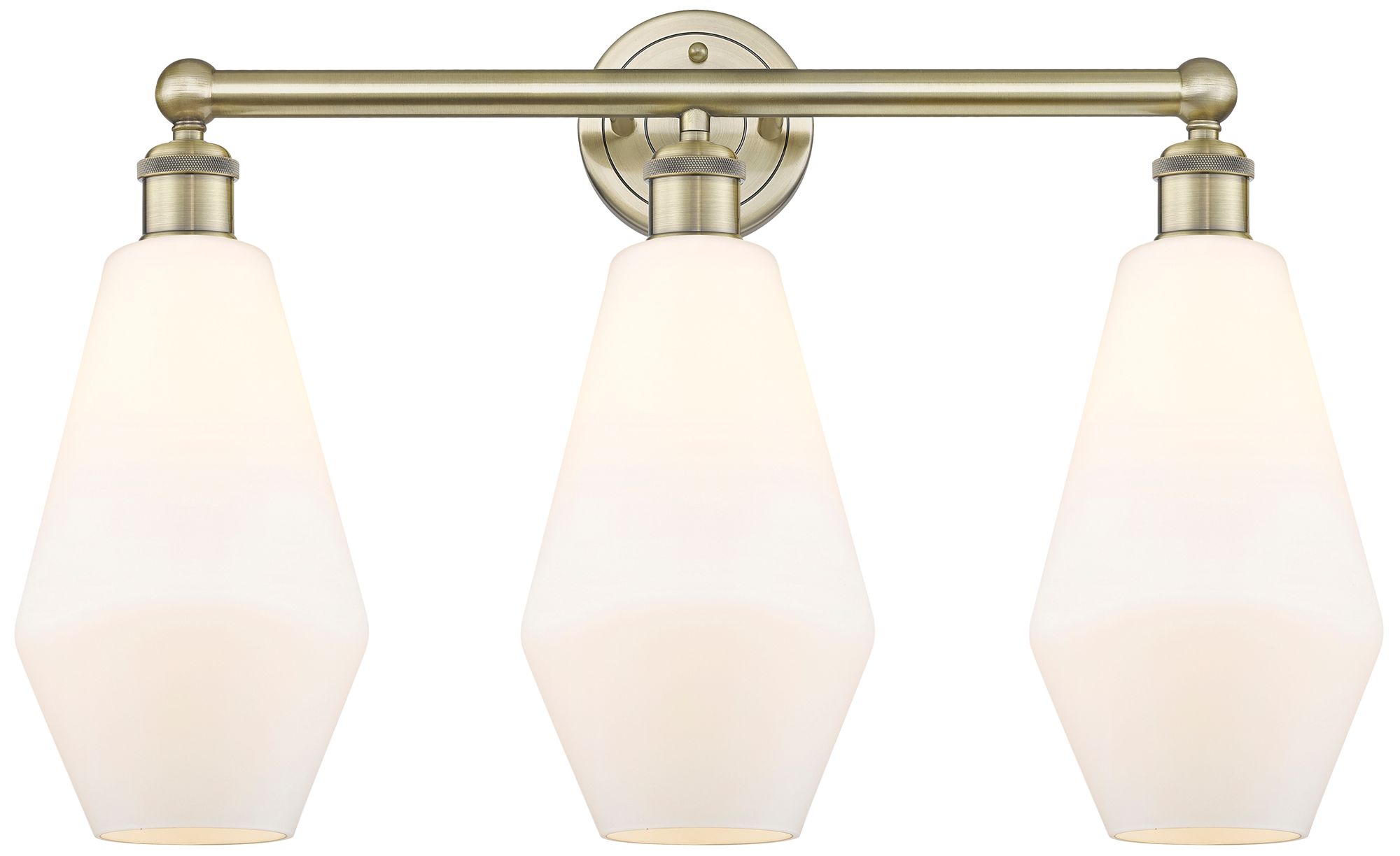 Cindyrella 25"W 3 Light Antique Brass Bath Light With Cased White Shad
