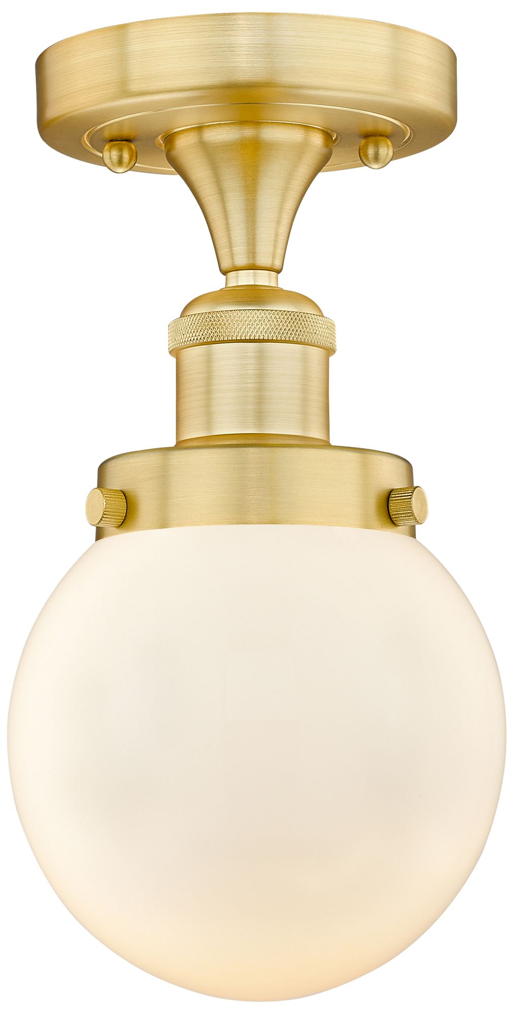 Beacon 6" Wide Satin Gold Semi.Flush Mount With Matte White Glass Shad