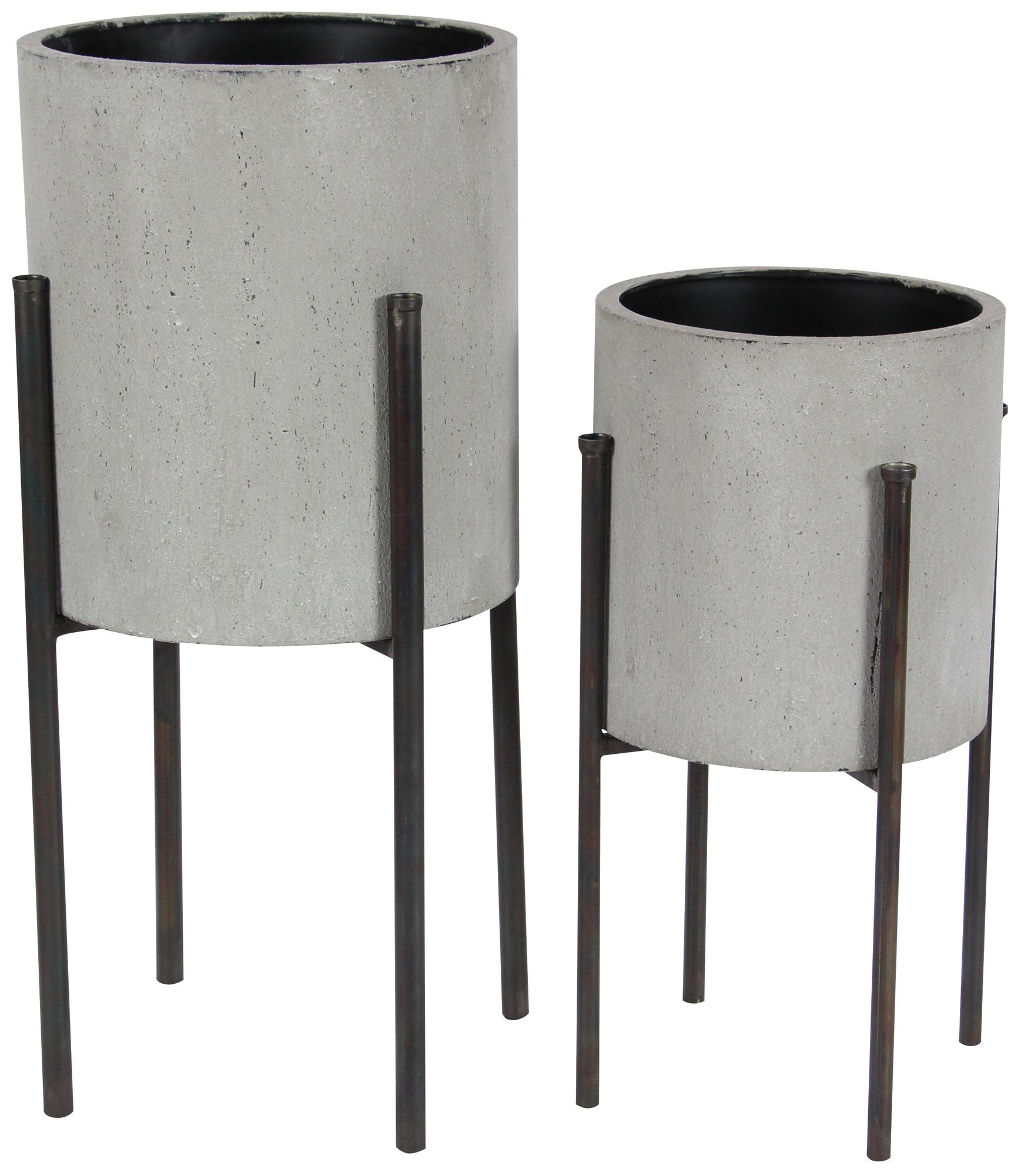 Light Gray Metal Modern Planter, S/2 19", 23"H