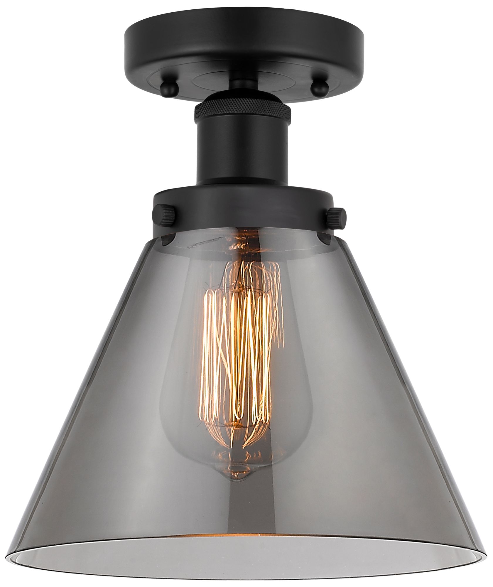 Edison Large Cone 7" Matte Black Semi Flush Mount w/ Plated Smoke Shad