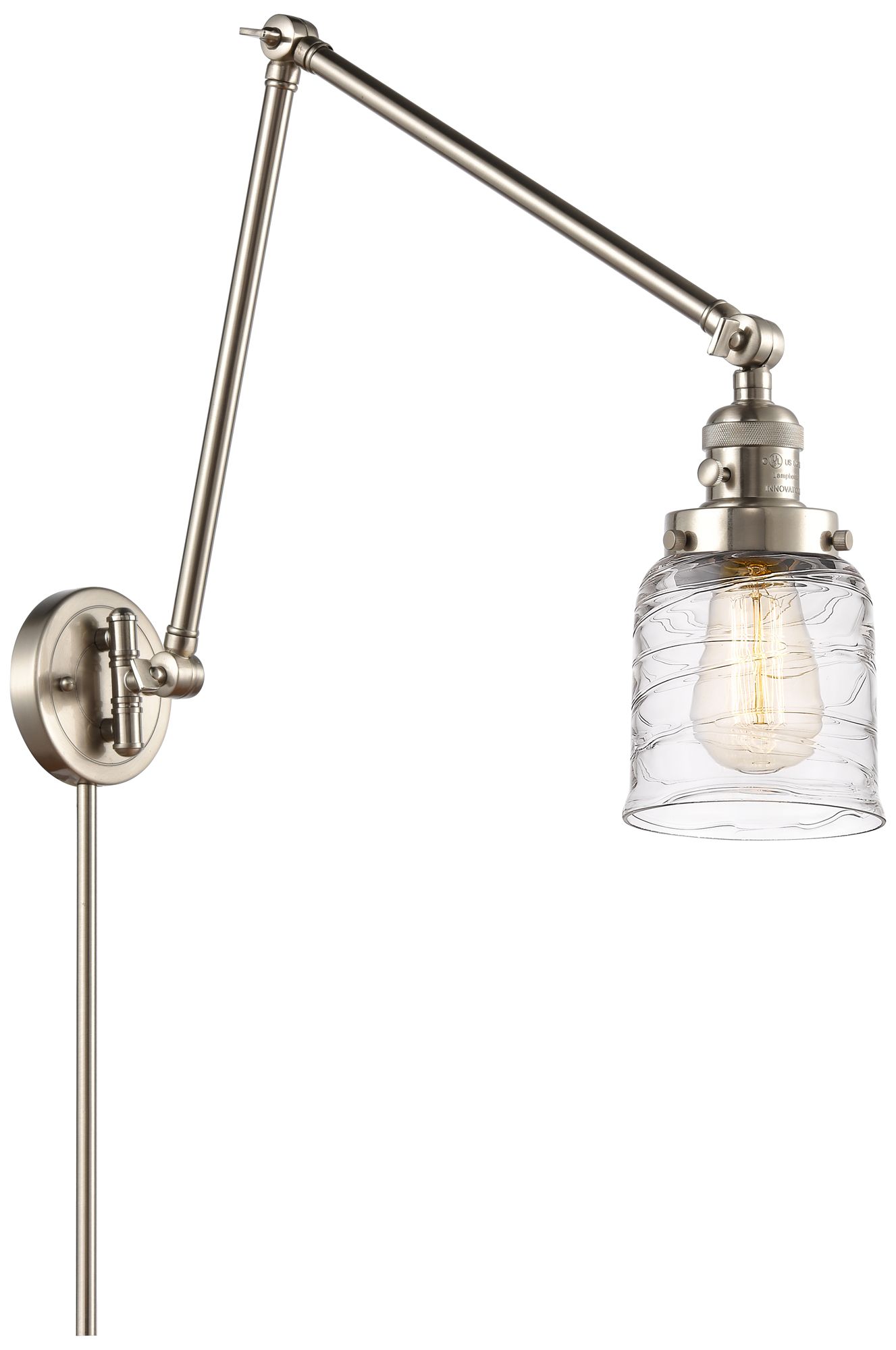 Bell 8" Brushed Satin Nickel LED Double Swing Arm With Deco Swirl Shad