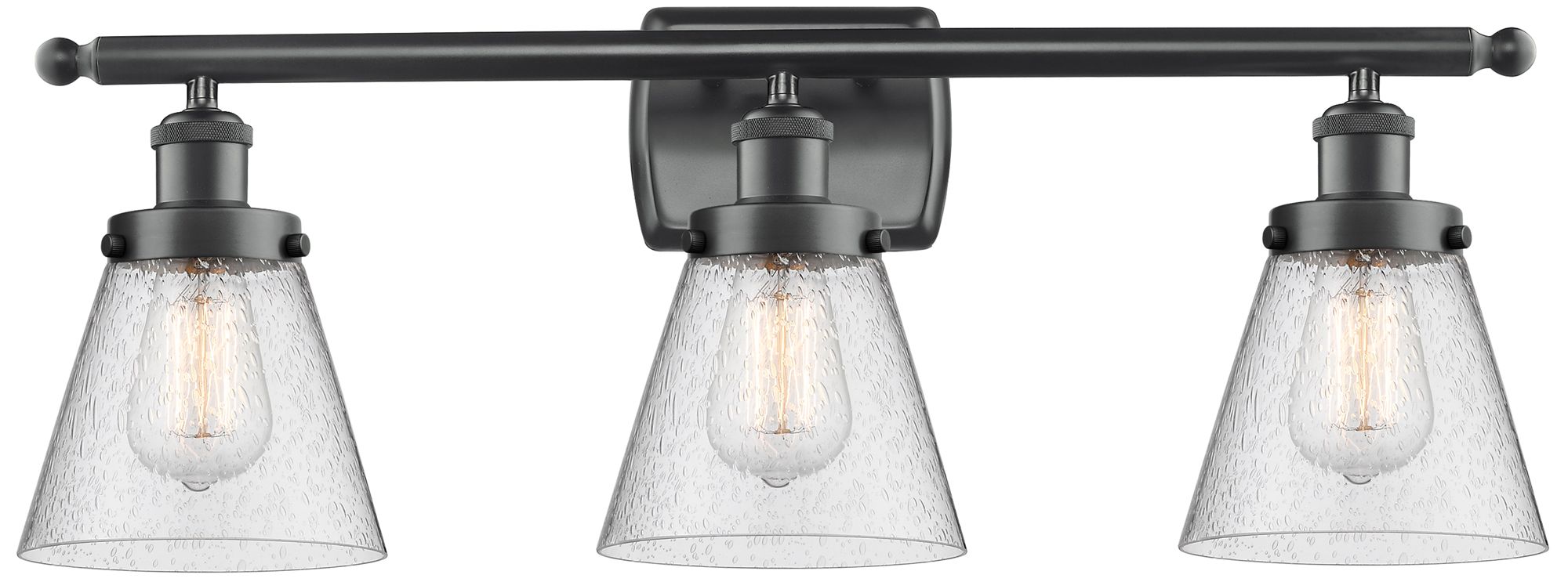 Ballston Urban Cone 6" 26"W 3 Light Matte Black Bath Light w/ See