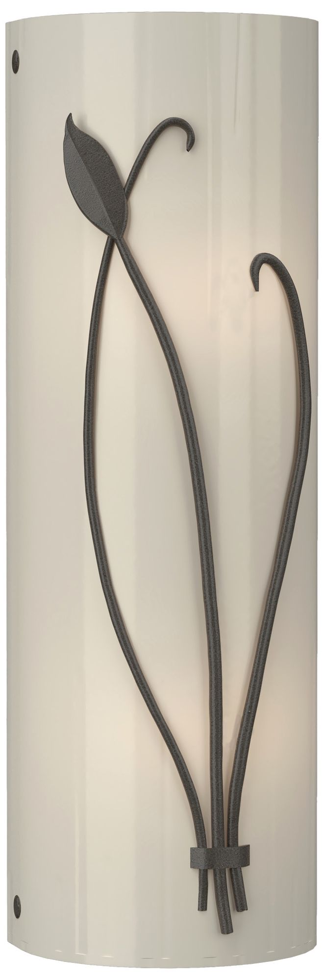 Forged Leaf and Stem 17" High Dark Smoke Sconce With Ivory Art Glass S