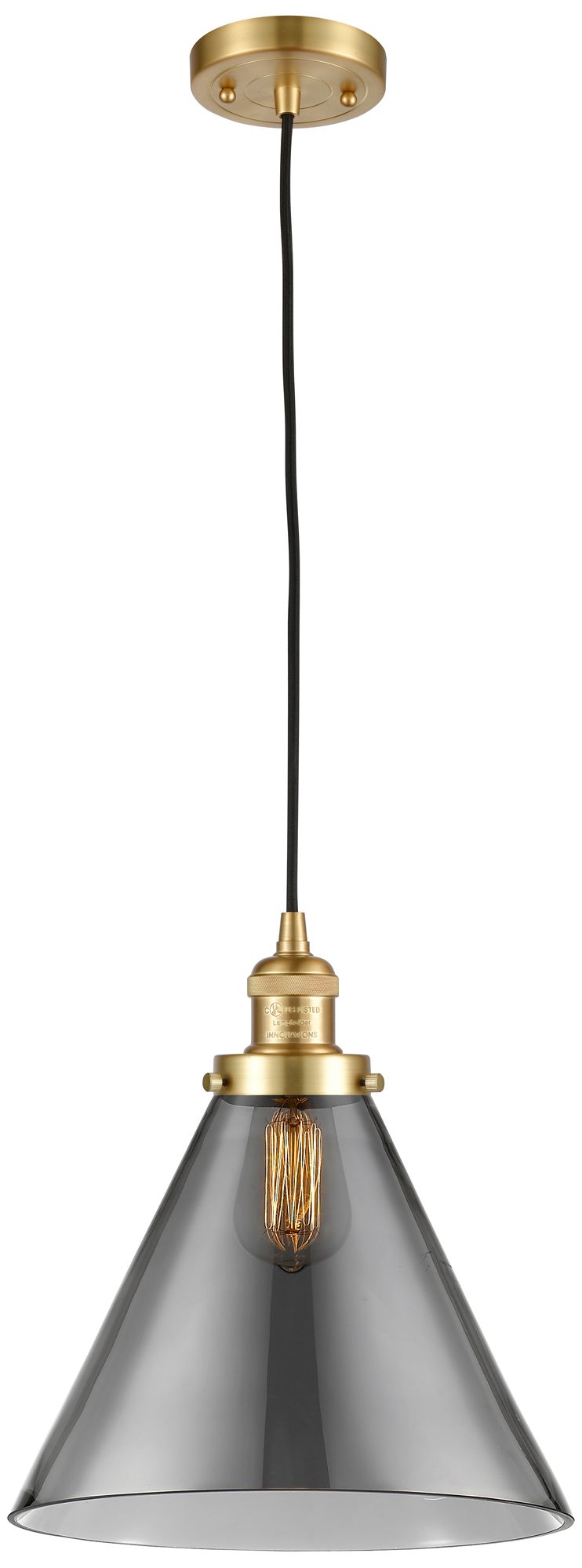 Franklin Restoration Cone 12" Satin Gold Corded Mini Pendant w/ Smoke