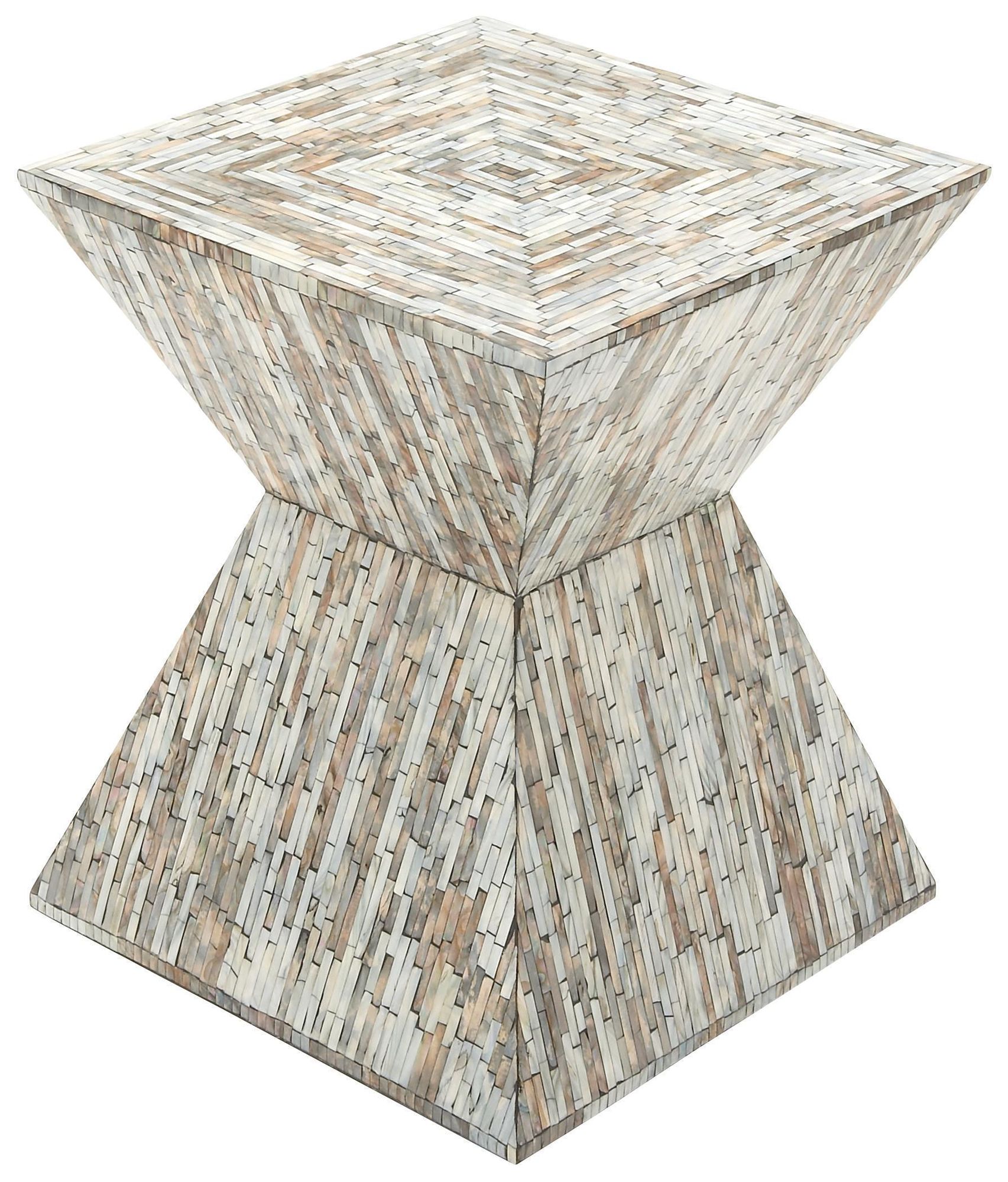 Gray Mother of Pearl Shell Contemporary Accent Table, 16" x 16" x 19"