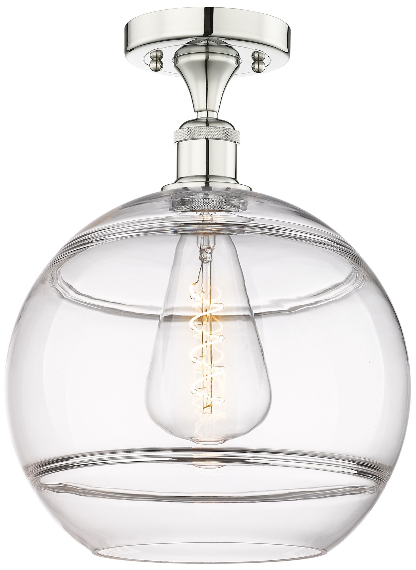 Edison Rochester 12" Wide Polished Nickel Semi-Flush Mount With Clear