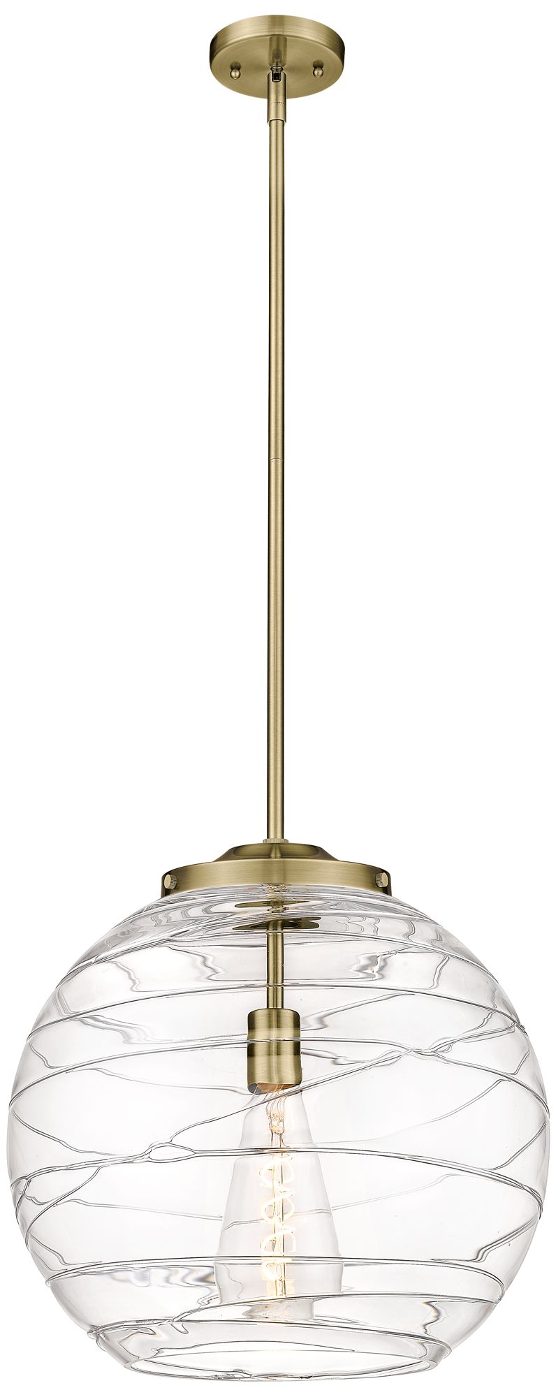 Athens 16" Antique Brass Pendant w/ Clear Deco Swirl Shade