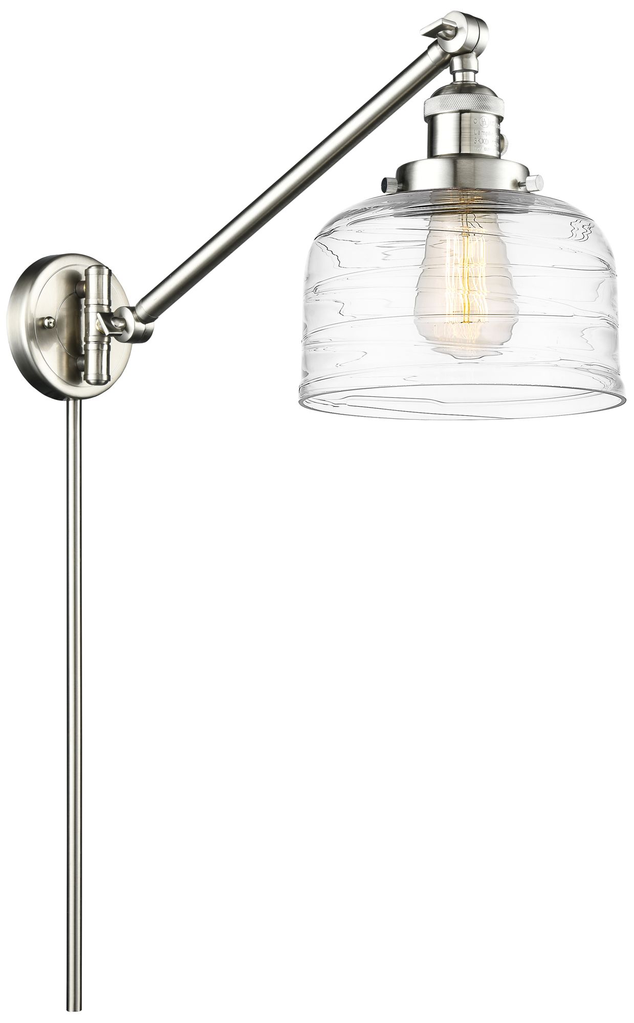 Bell 8" Brushed Satin Nickel LED Swing Arm With Clear Deco Swirl Shade