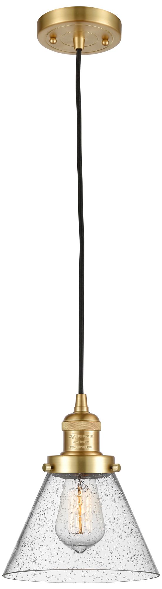 Franklin Restoration Cone 8" Satin Gold Corded Mini Pendant w/ Seedy S