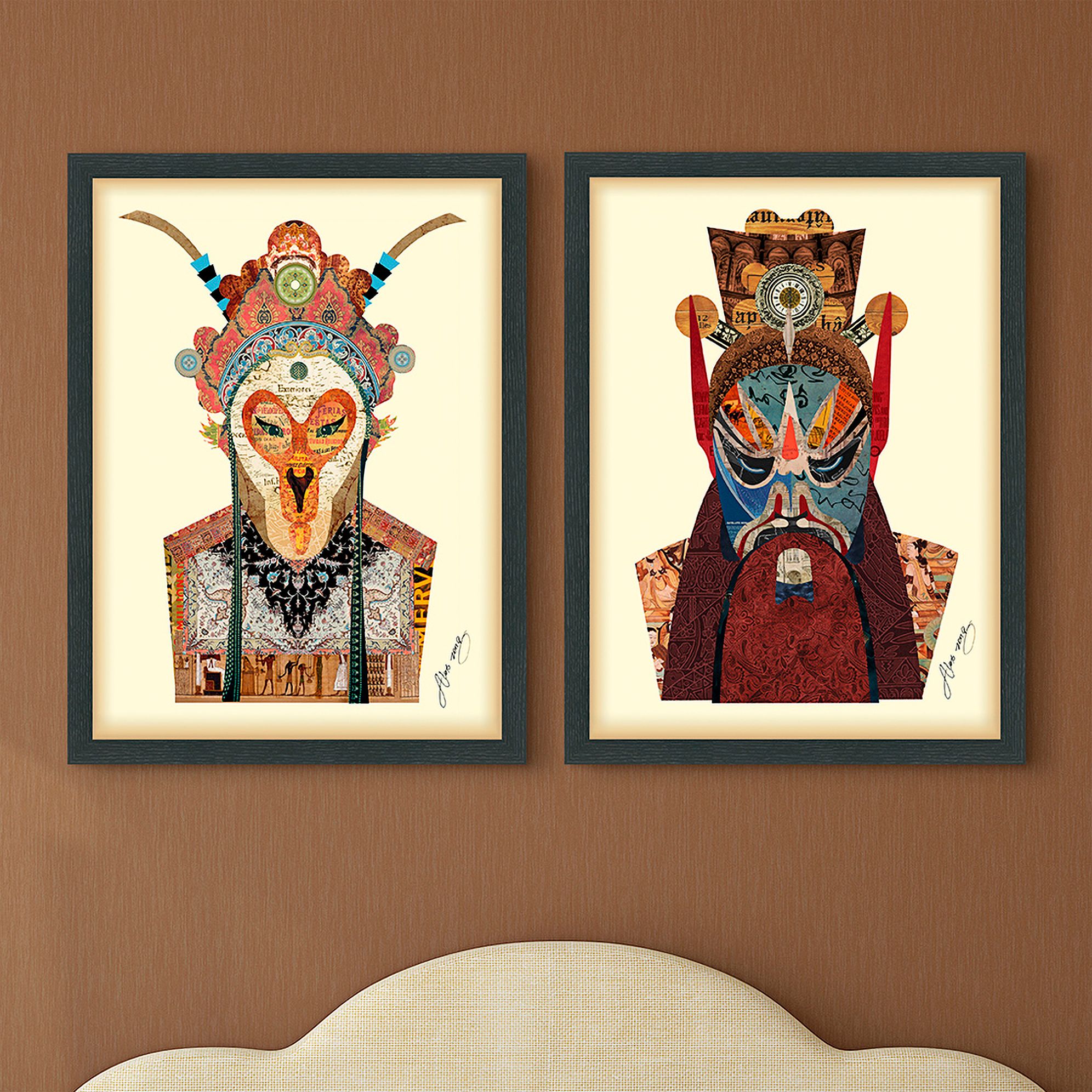 Beijing Opera Mask and Jiangwei 25"H 2-Piece Wall Art Set
