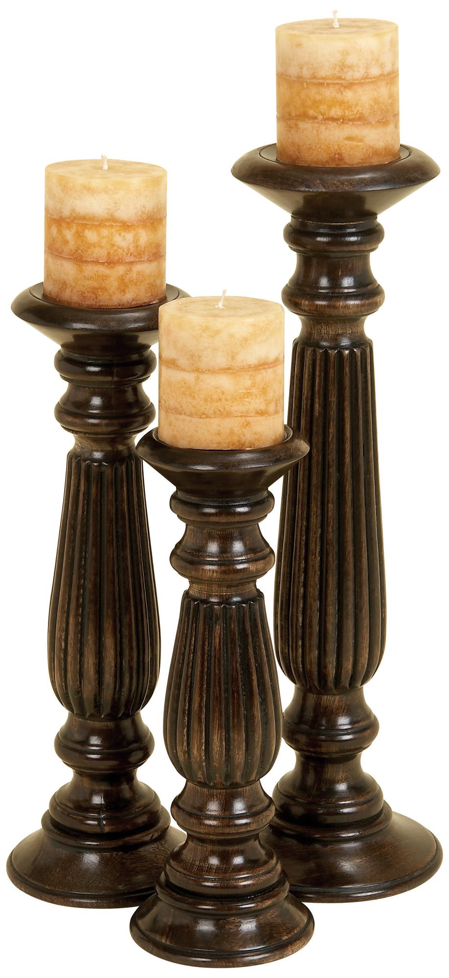 Dark Brown Mango Wood Decorative Candle Holder, Set of 3 18", 15", 12"H