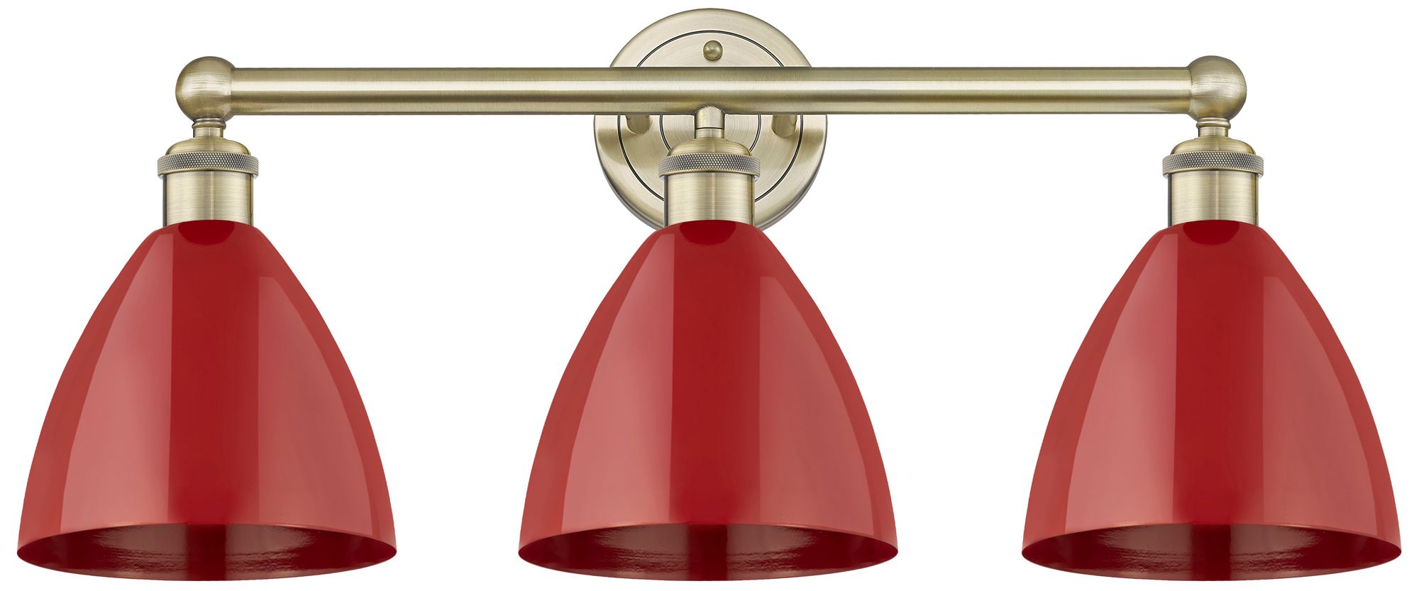 Plymouth Dome 25.5"W 3 Light Antique Brass Bath Vanity Light With Red