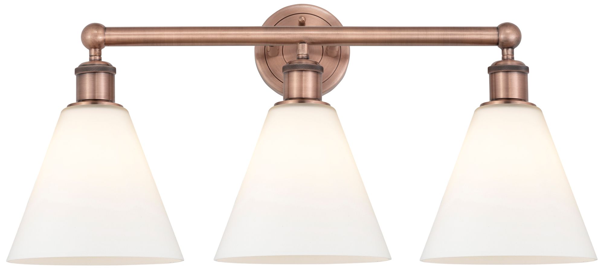 Berkshire 26"W 3 Light Antique Copper Bath Vanity Light With White Sha