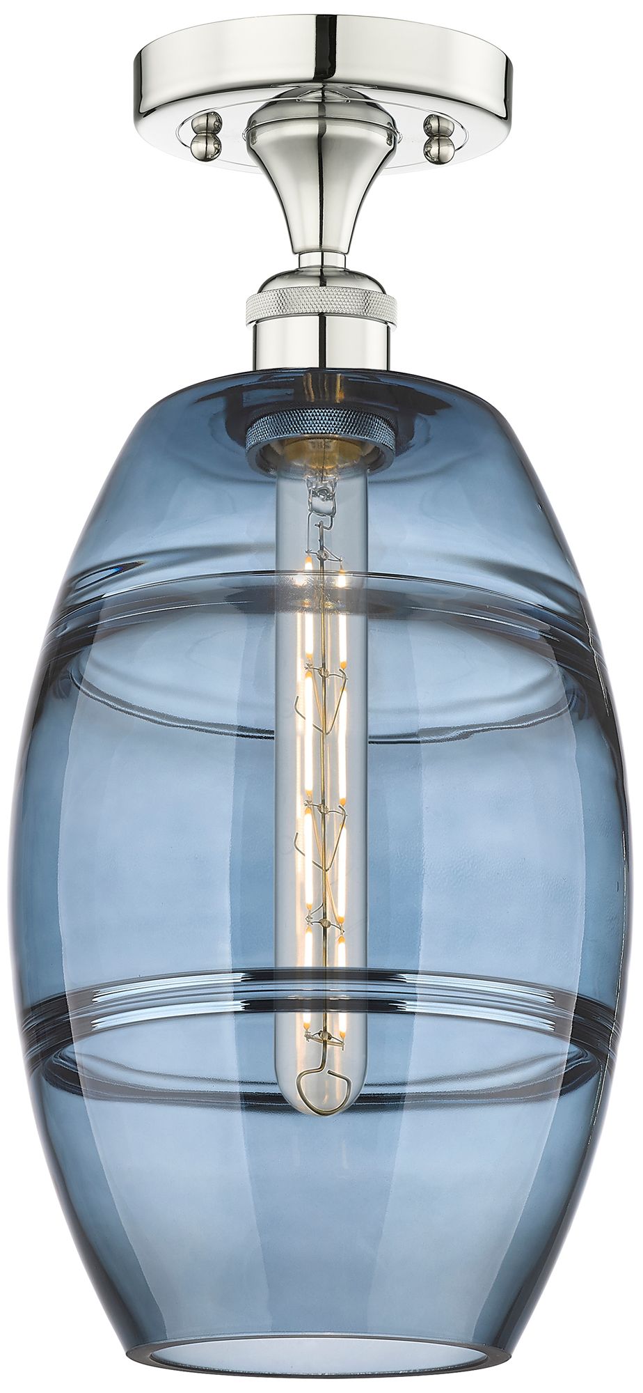Edison Vaz 8" Wide Polished Nickel Semi-Flush Mount w/ Princess Blue S