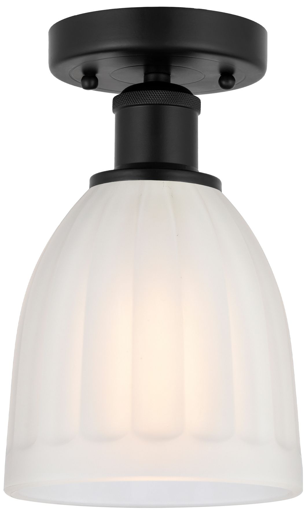 Edison Brookfield 6" Matte Black Semi Flush Mount w/ White Shade