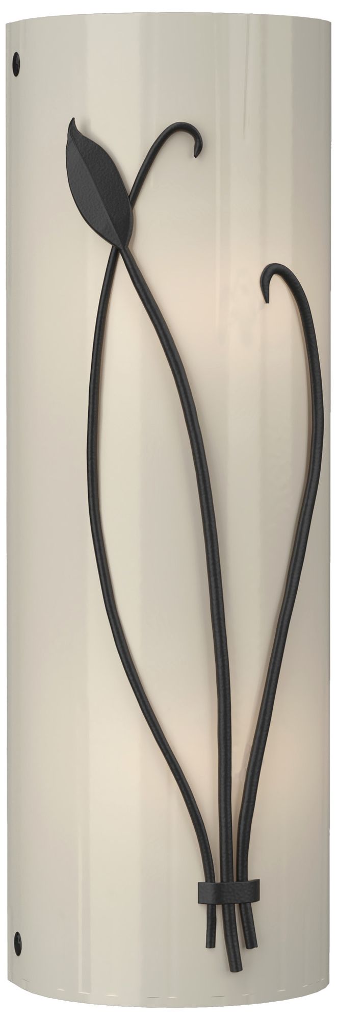 Forged Leaf and Stem 17" High Black Sconce With Ivory Art Glass Shade