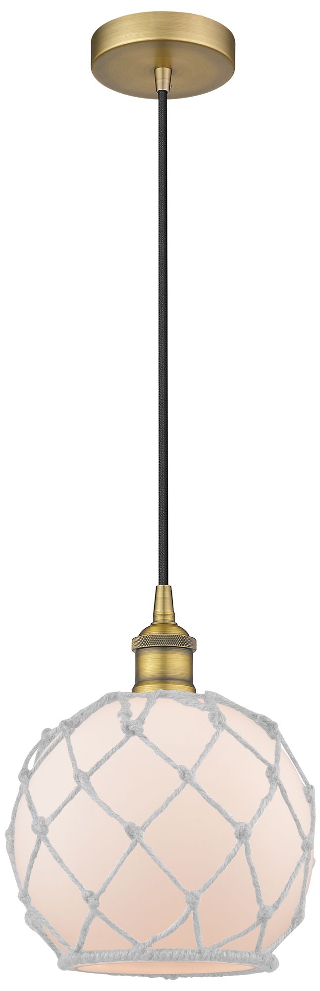 Edison Farmhouse 8" Brushed Brass Corded Mini Pendant w/ White Rope Sh