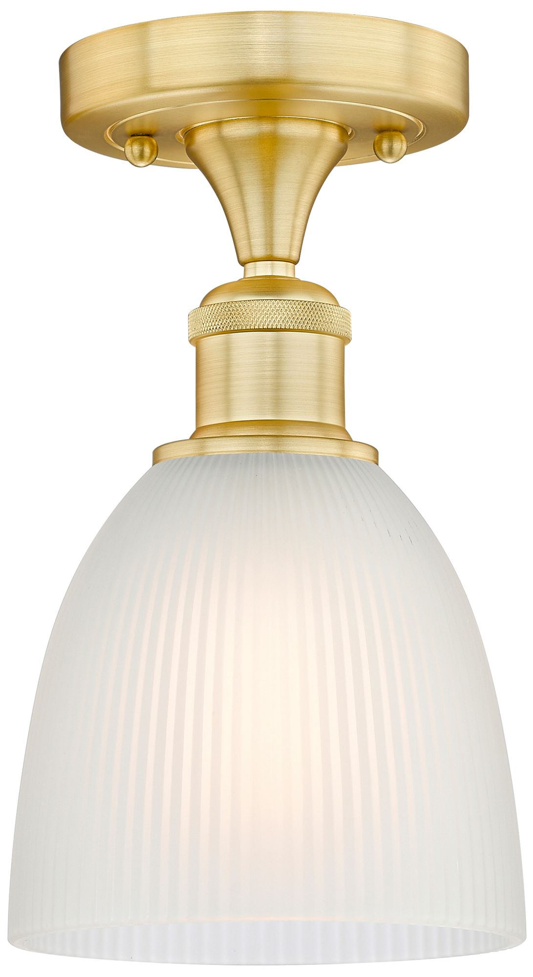 Castile 6" Wide Satin Gold Flush Mount With White Glass Shade