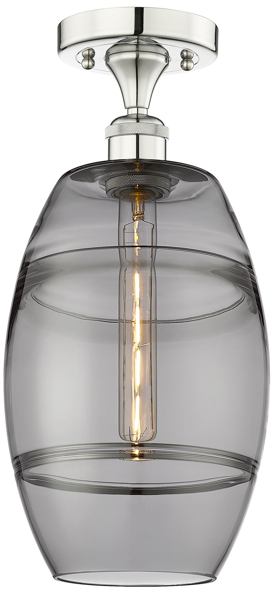 Edison Vaz 8" Wide Polished Nickel Semi-Flush Mount With Light Smoke S