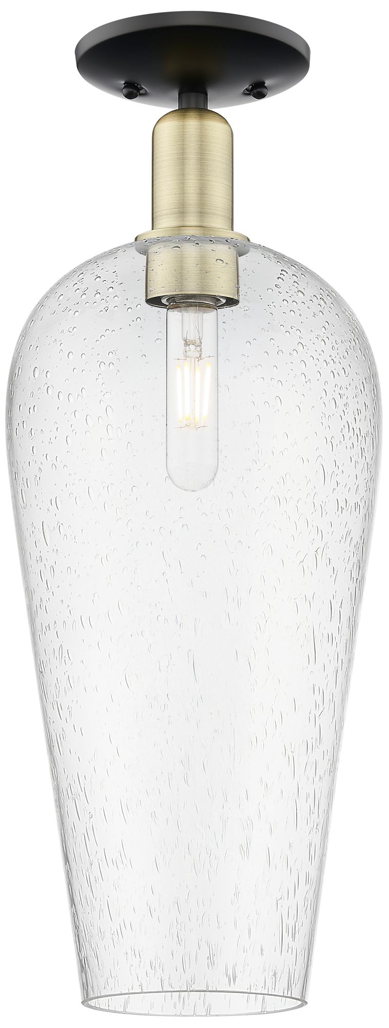 Chelsea 8" Wide Black Antique Brass Semi.Flush Mount With Seedy Shade