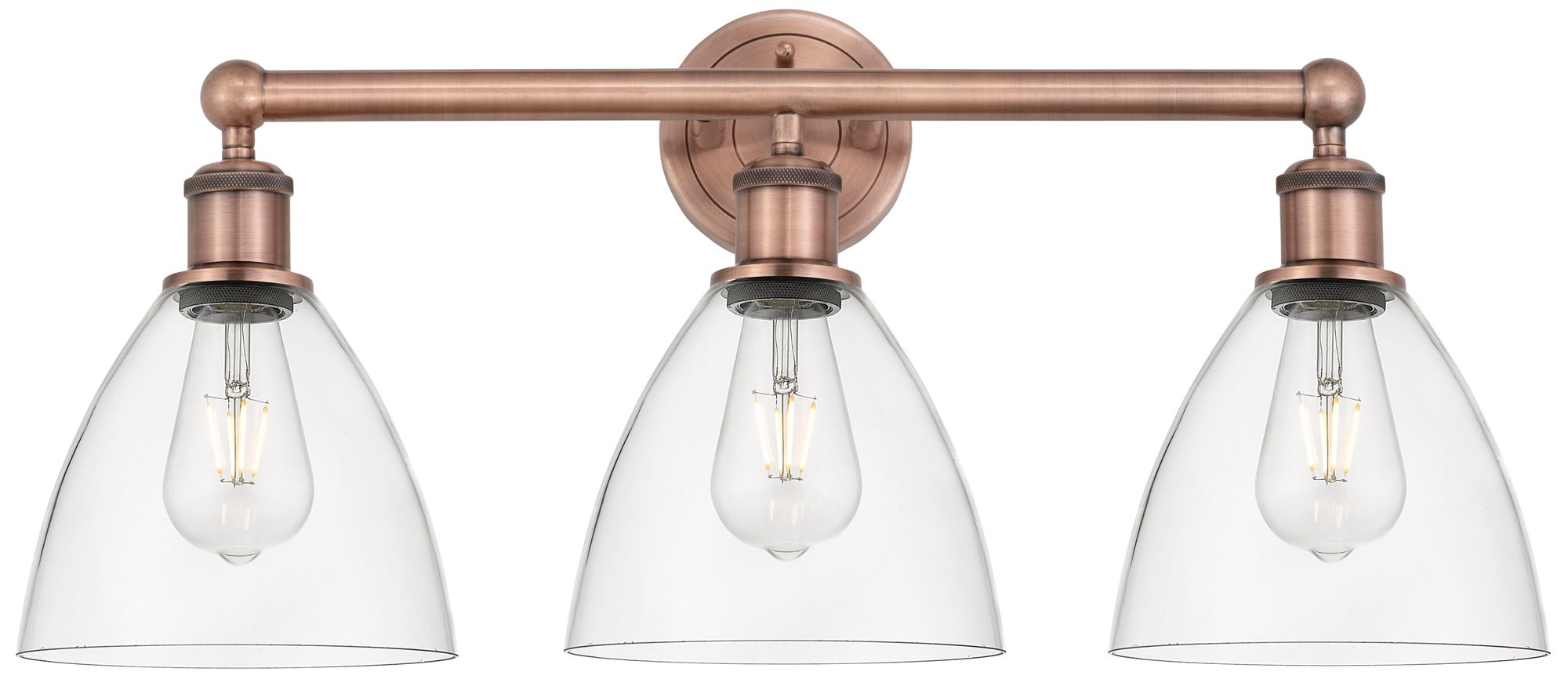 Bristol Glass 25.5"W 3 Light Antique Copper Bath Light With Clear Shad