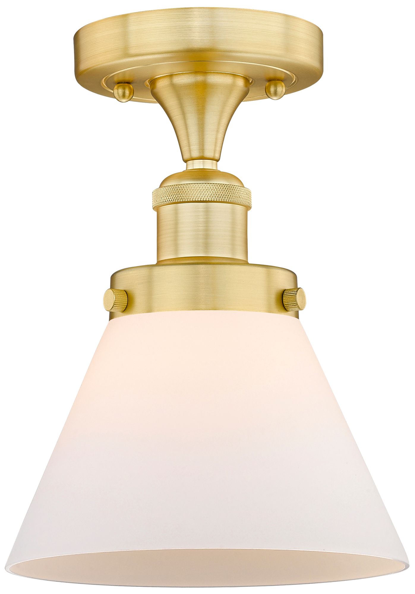 Cone 7.75" Wide Satin Gold Semi.Flush Mount With Matte White Glass Sha