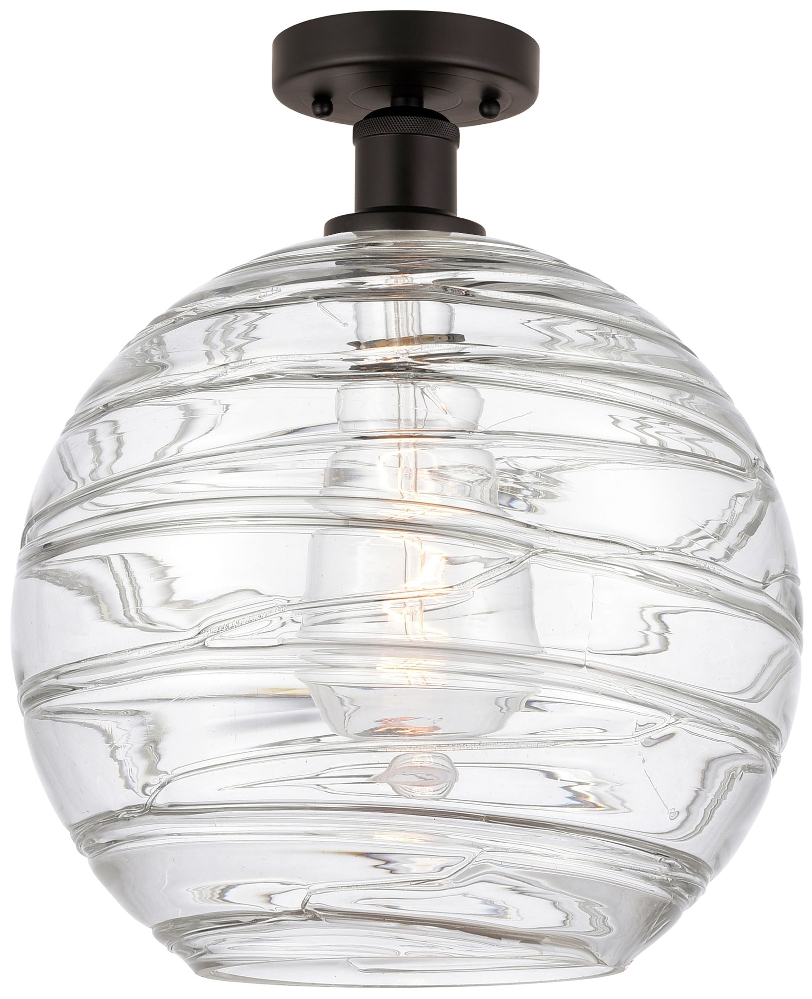 Edison Athens Deco Swirl 12" Semi-Flush - Oil Rubbed Bronze - Clear
