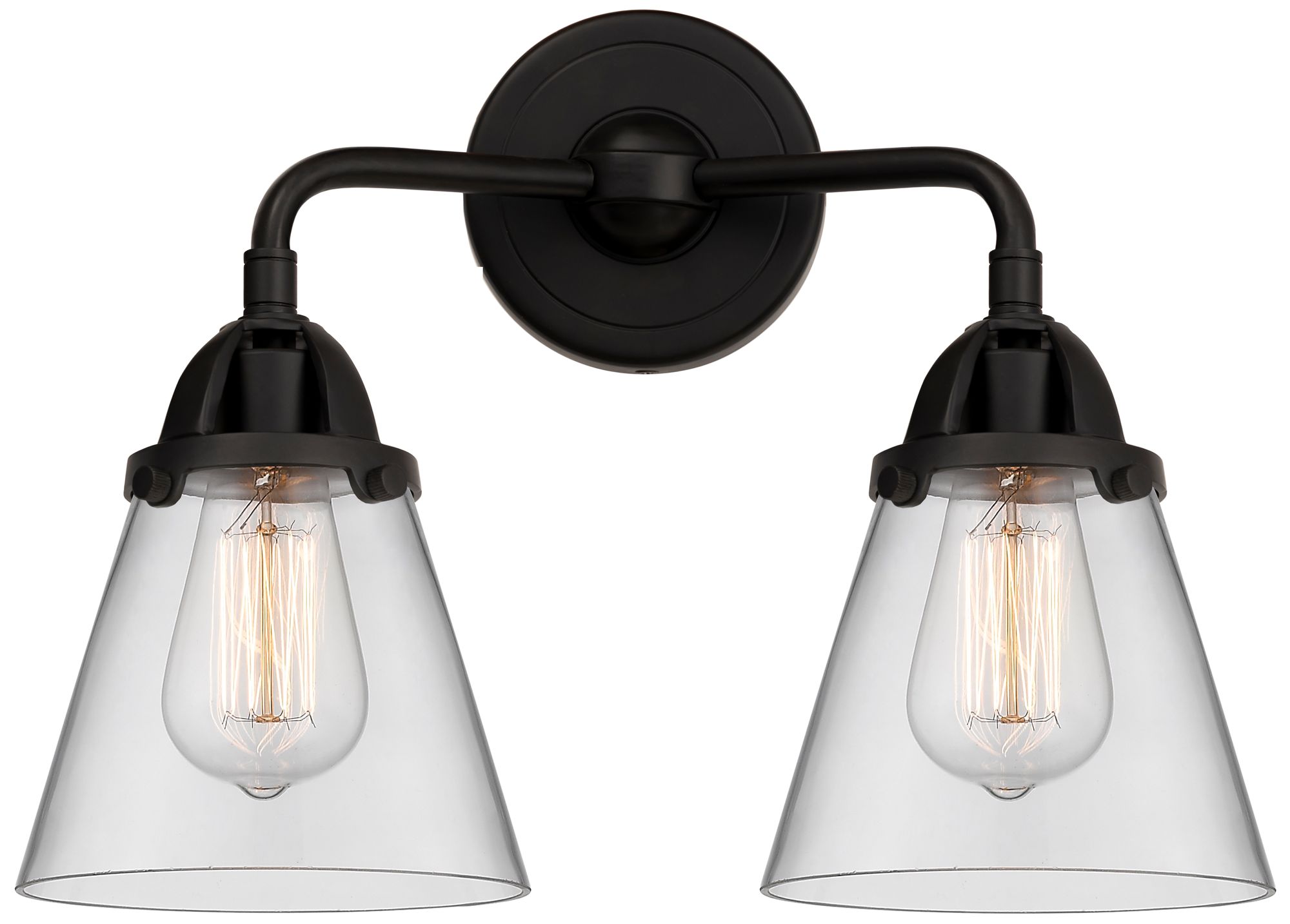 Nouveau 2 Cone 6" 2 Light 14" Bath Light - Matte Black - Clear Sh