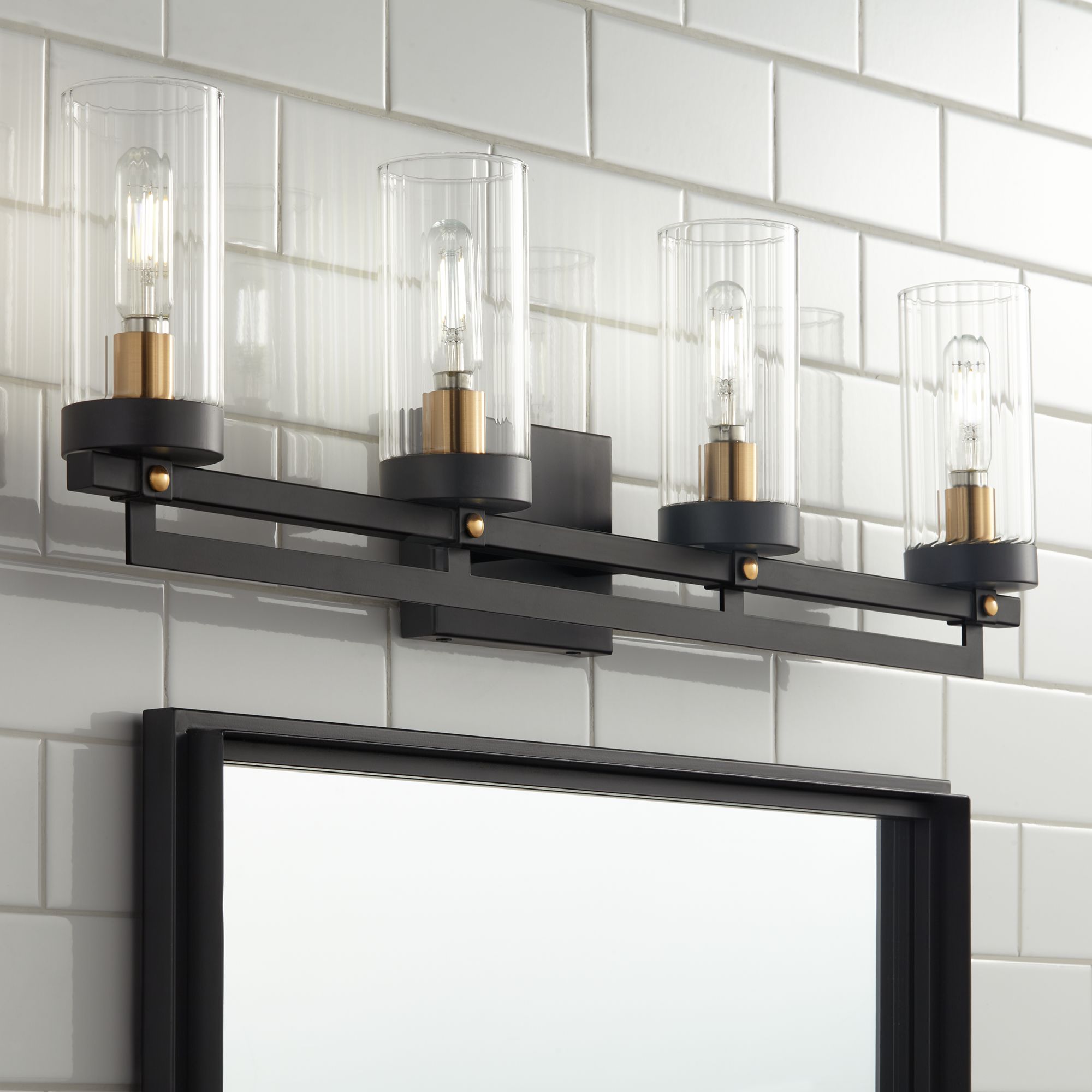 Possini Euro Valor 28" Wide Matte Black 4-Light Bath Light
