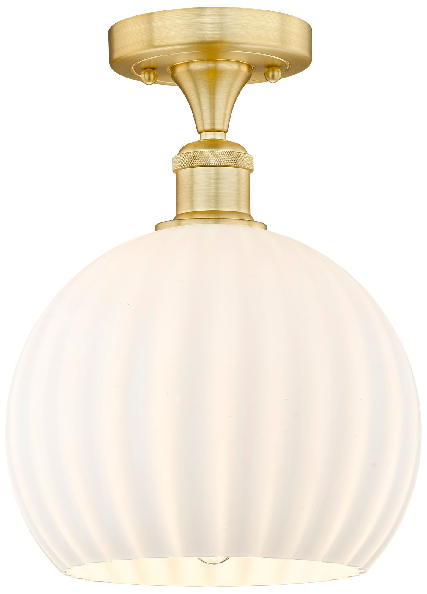 Edison 10" Wide Satin Gold Semi-Flush Mount With White Venetian Shade