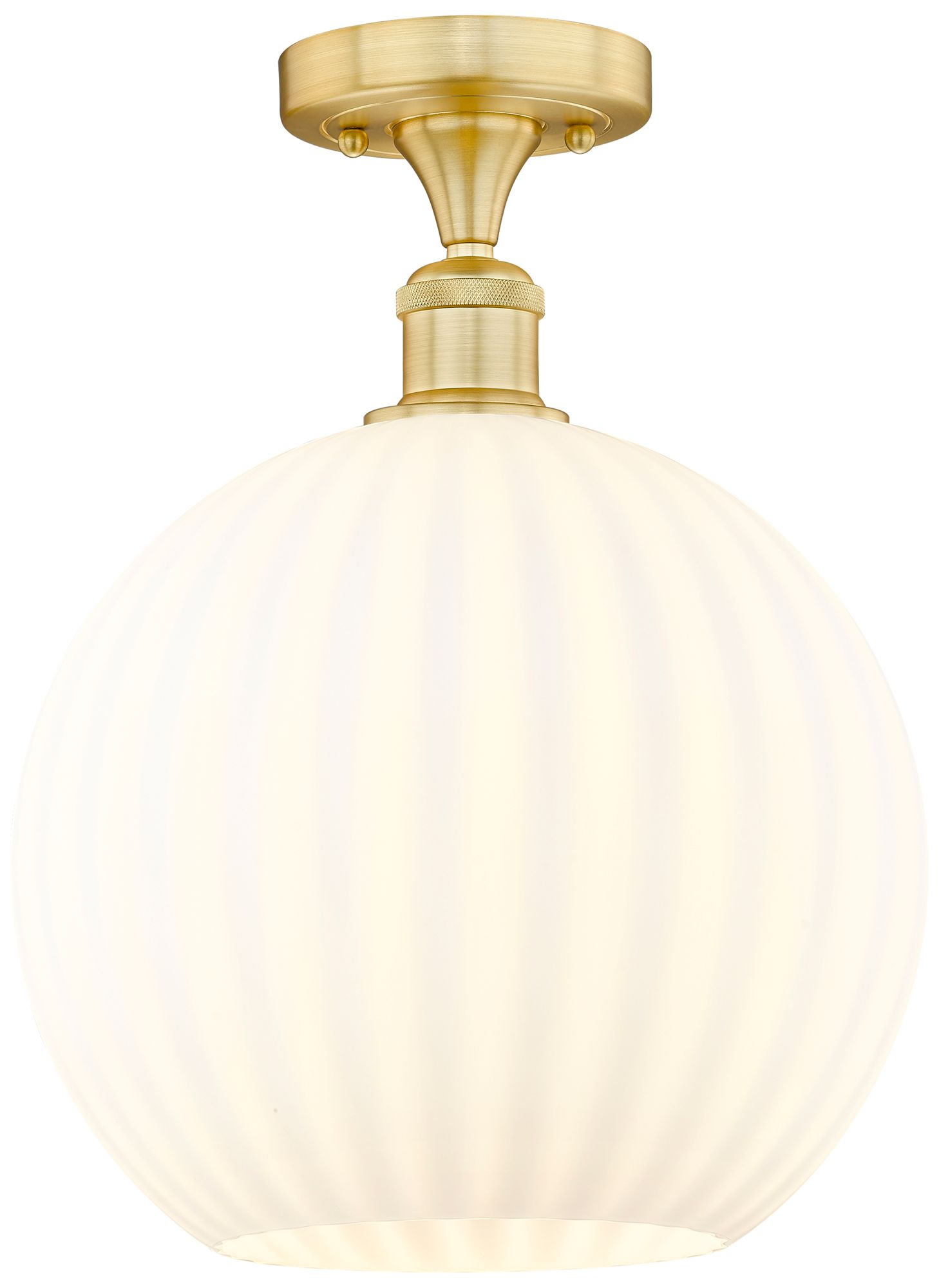 Edison 12" Wide Satin Gold Semi-Flush Mount With White Venetian Shade
