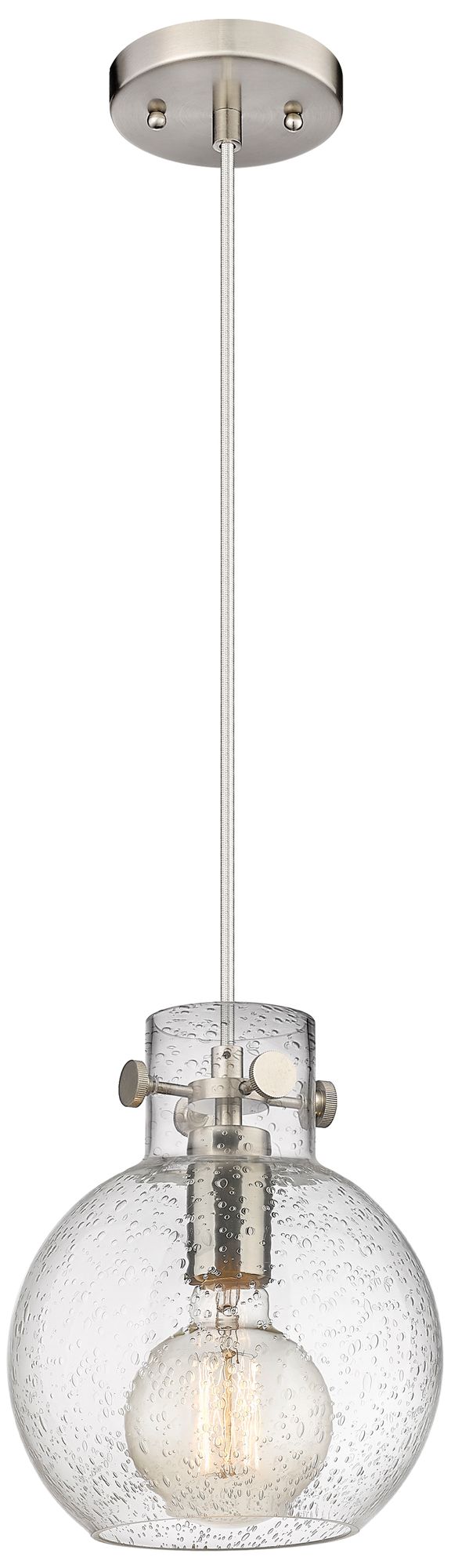 Newton Sphere 8" Wide Satin Nickel Cord Hung Pendant With Seedy Glass